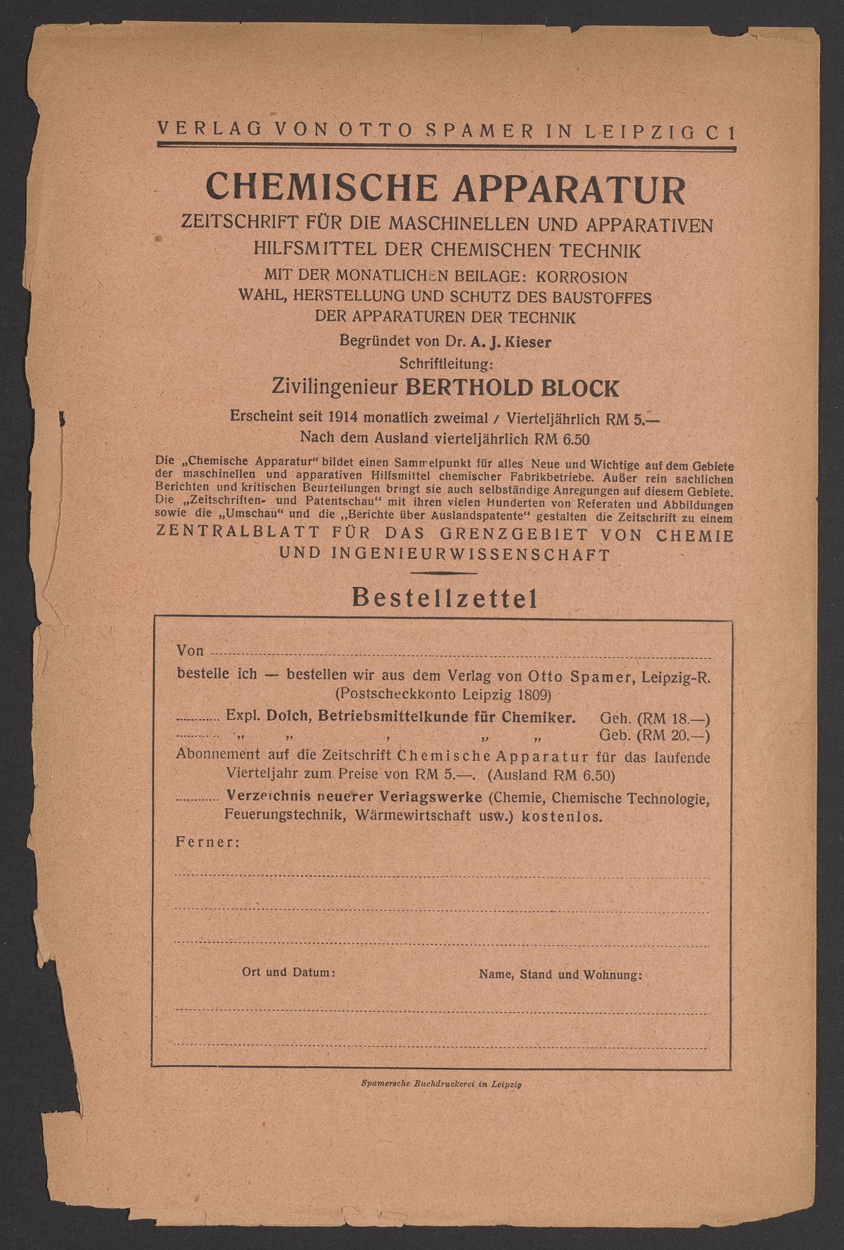 “Advertisements for Works by Verlag Von Otto Spamer.” Otto Spamer (Firm), circa 1927. Papers of Georg and Max Bredig, Box 3, Folder 5. Science History Institute. Philadelphia. https://digital.sciencehistory.org/works/l63rzam.