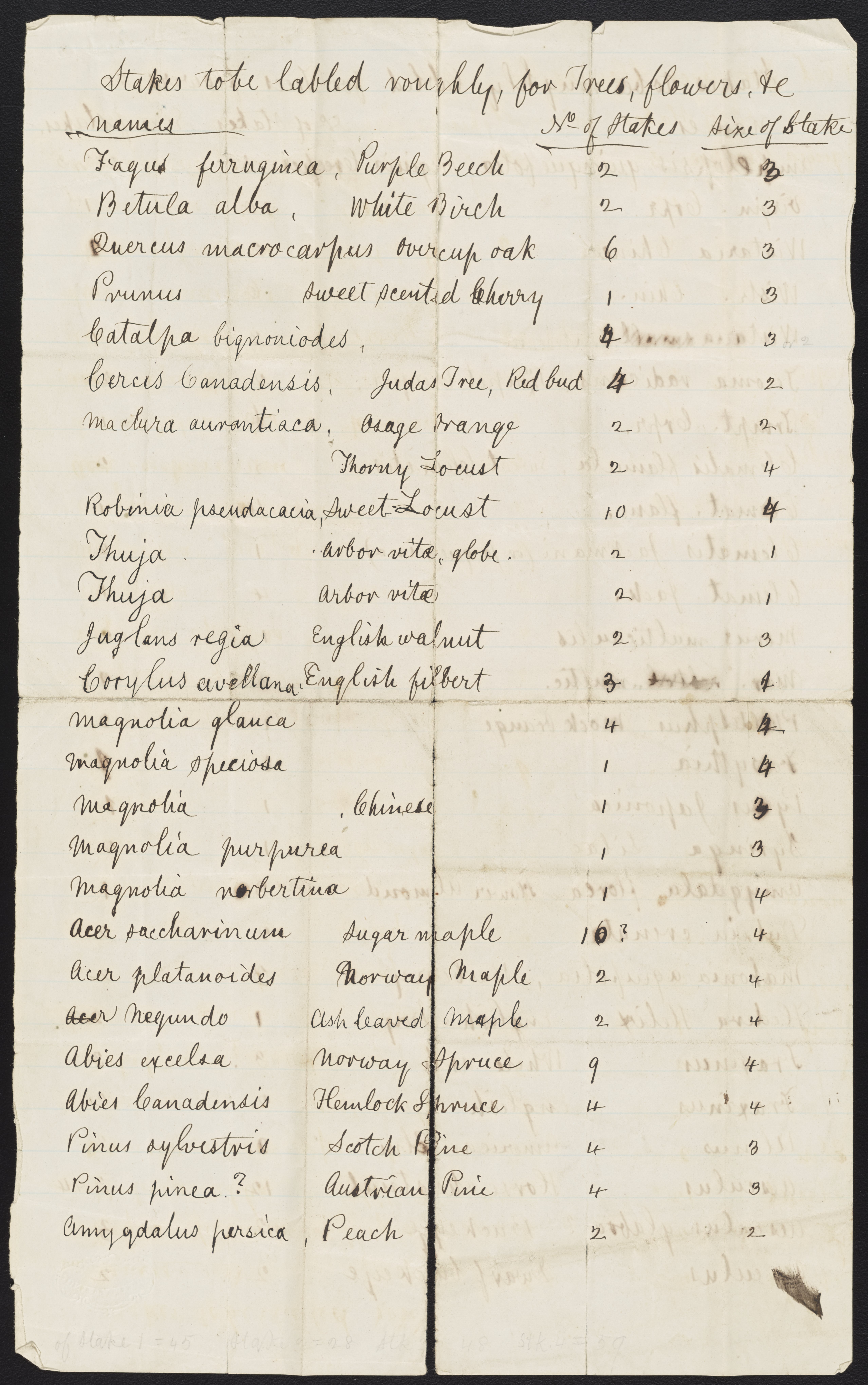 Booth, James Curtis. “Stakes to Be Roughly Labeled for Trees, Flowers, Etc.,” circa 1884. Papers of James Curtis Booth, Box 2, Folder 10. Science History Institute. Philadelphia. https://digital.sciencehistory.org/works/l73mssf.