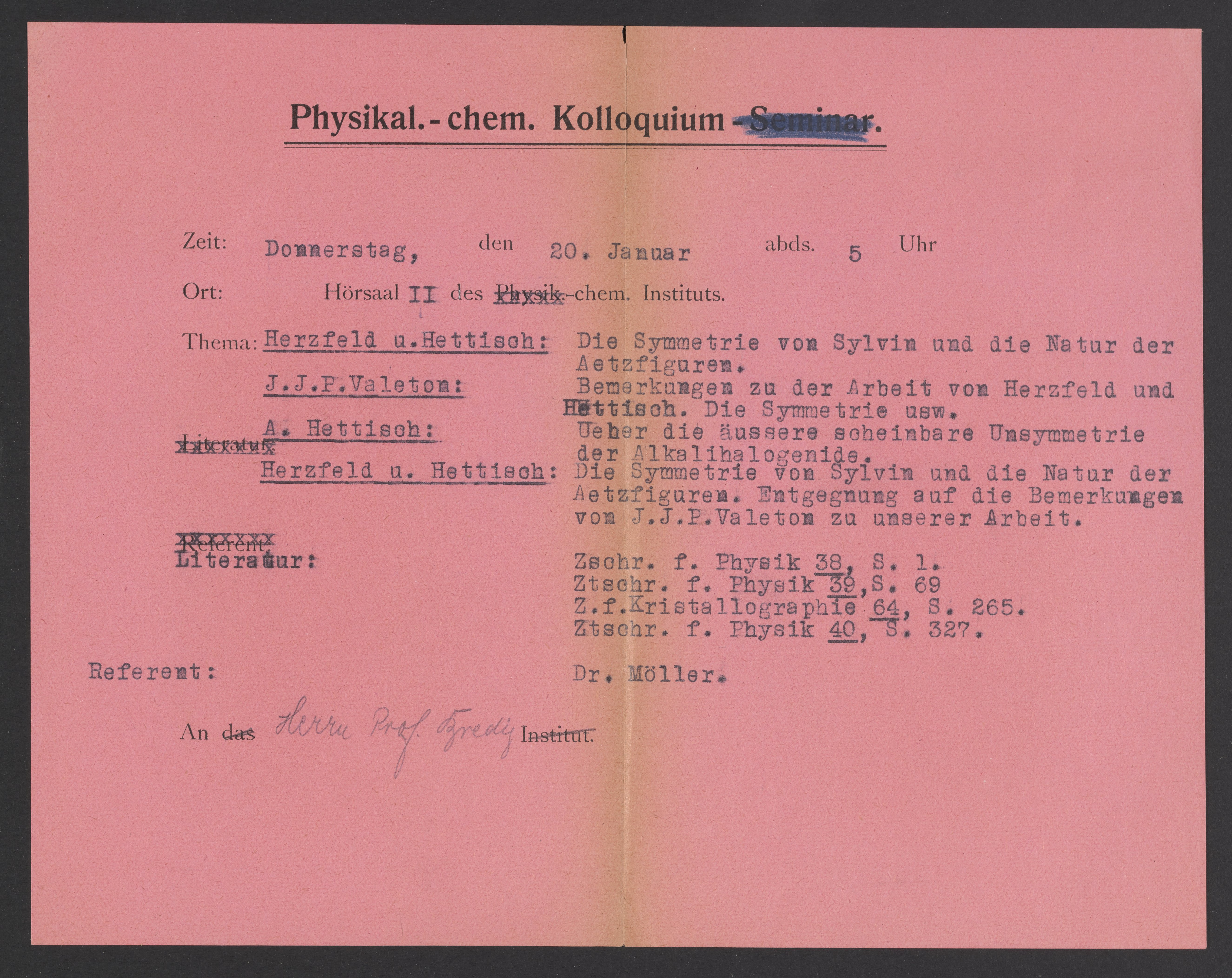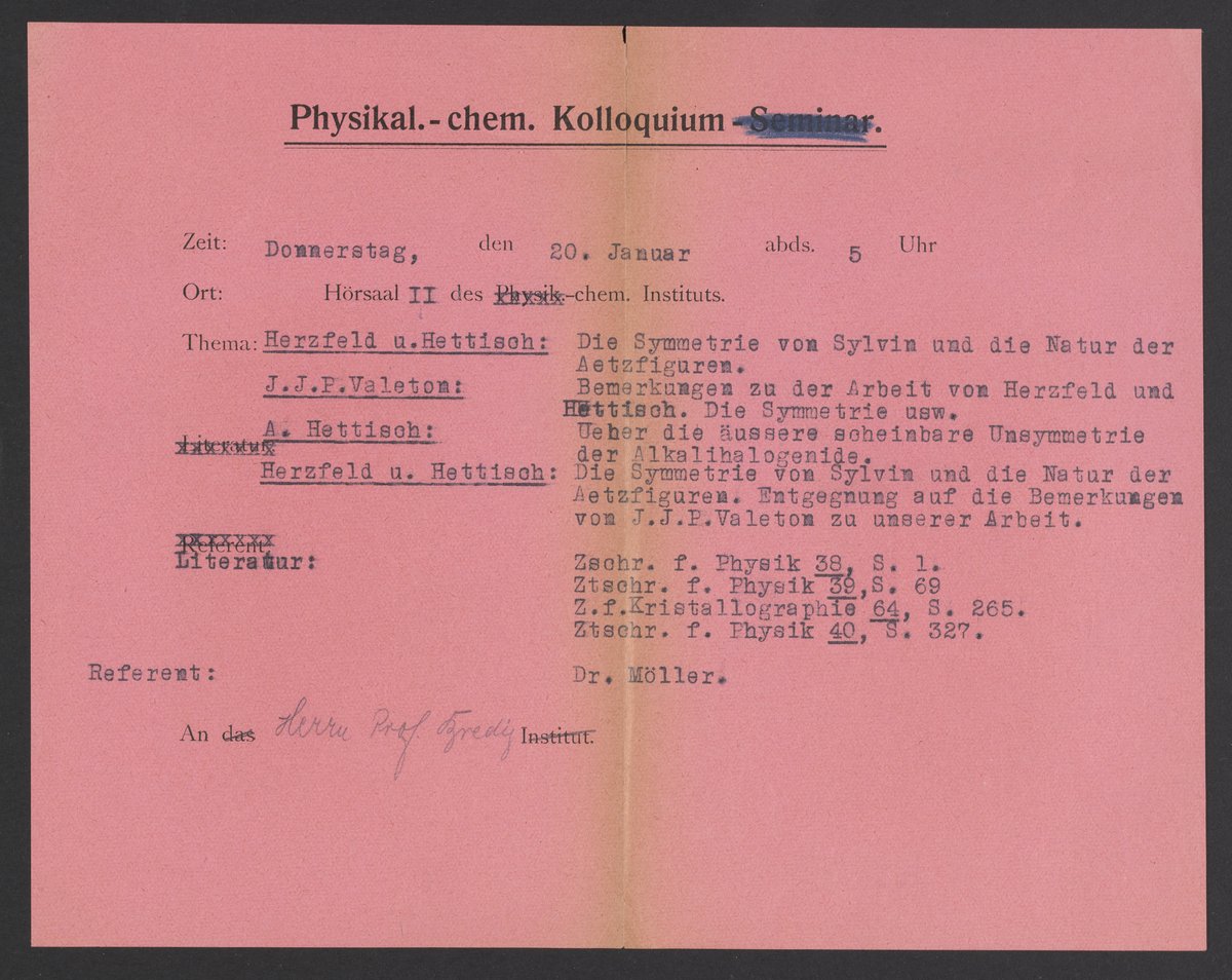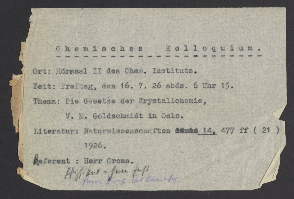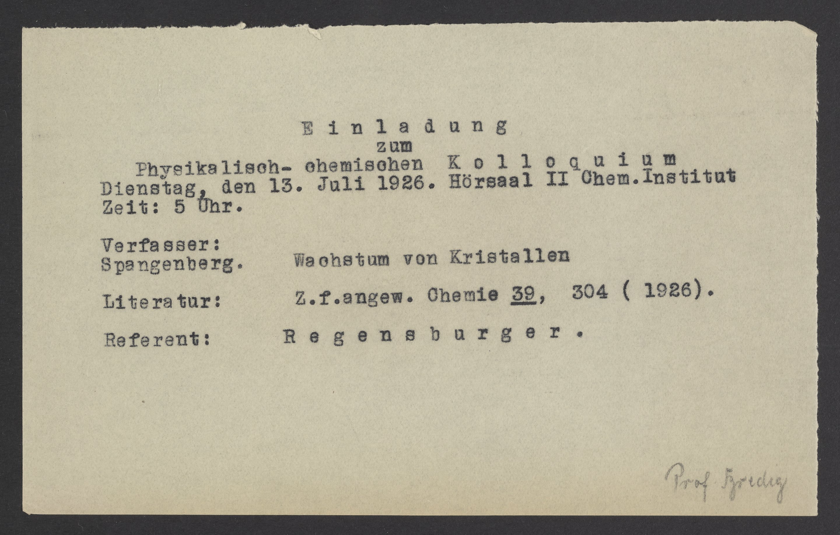 “Invitations to Colloquiums in Physical Chemistry,” 1926. Papers of Georg and Max Bredig, Box 5, Folder 10. Science History Institute. Philadelphia. https://digital.sciencehistory.org/works/l8l2yfr.