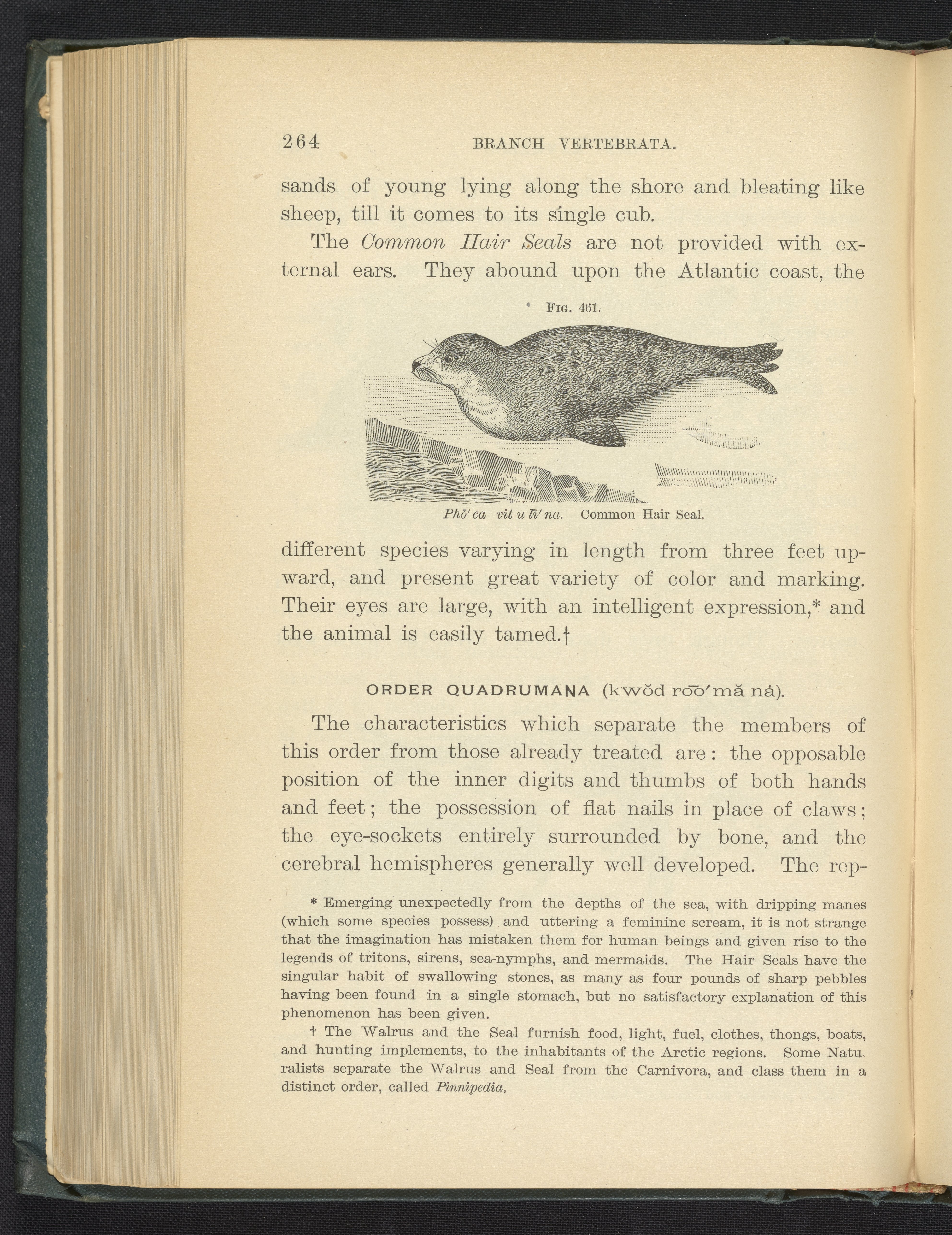 Figure 461 of the 1887 volume Popular Zoology depicting a common hair seal.