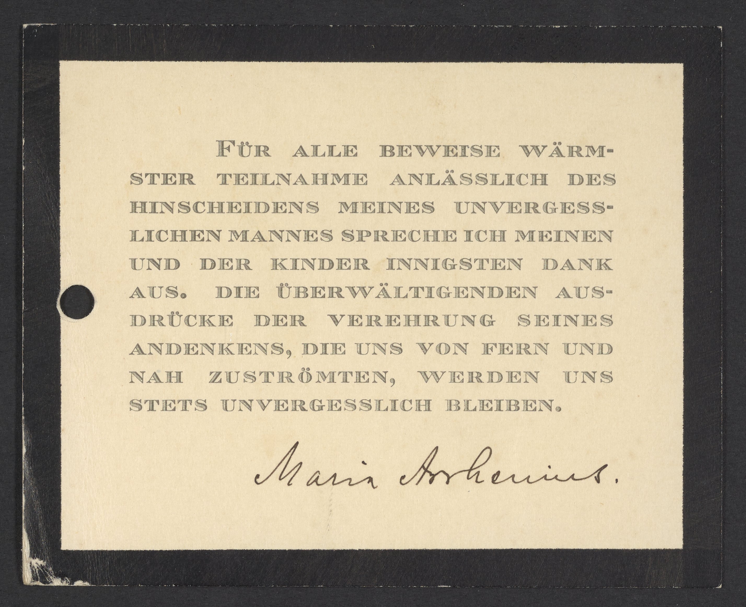 Thank You Card from Maria Arrhenius to Georg Bredig