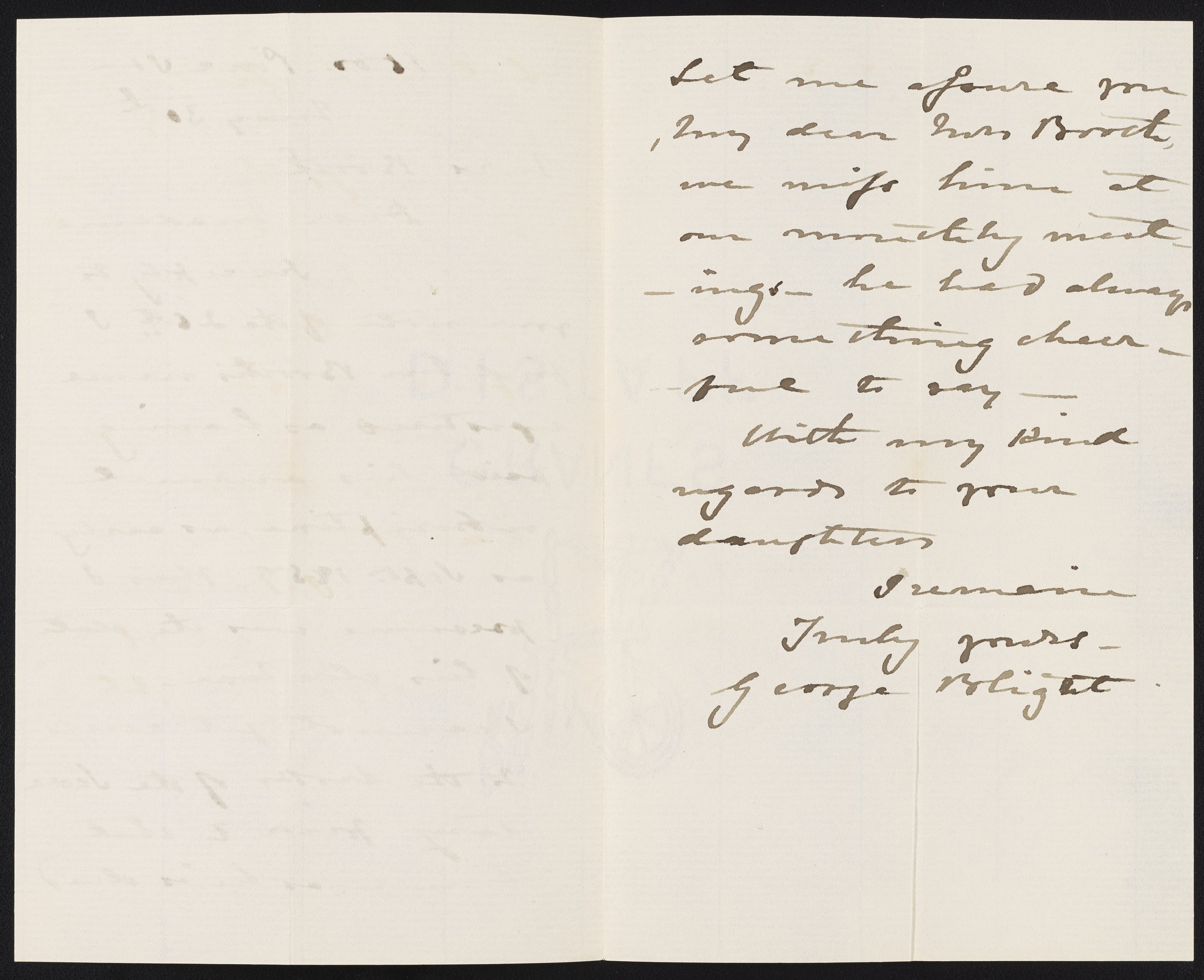 Letter from George Blight to Margaret M. Booth