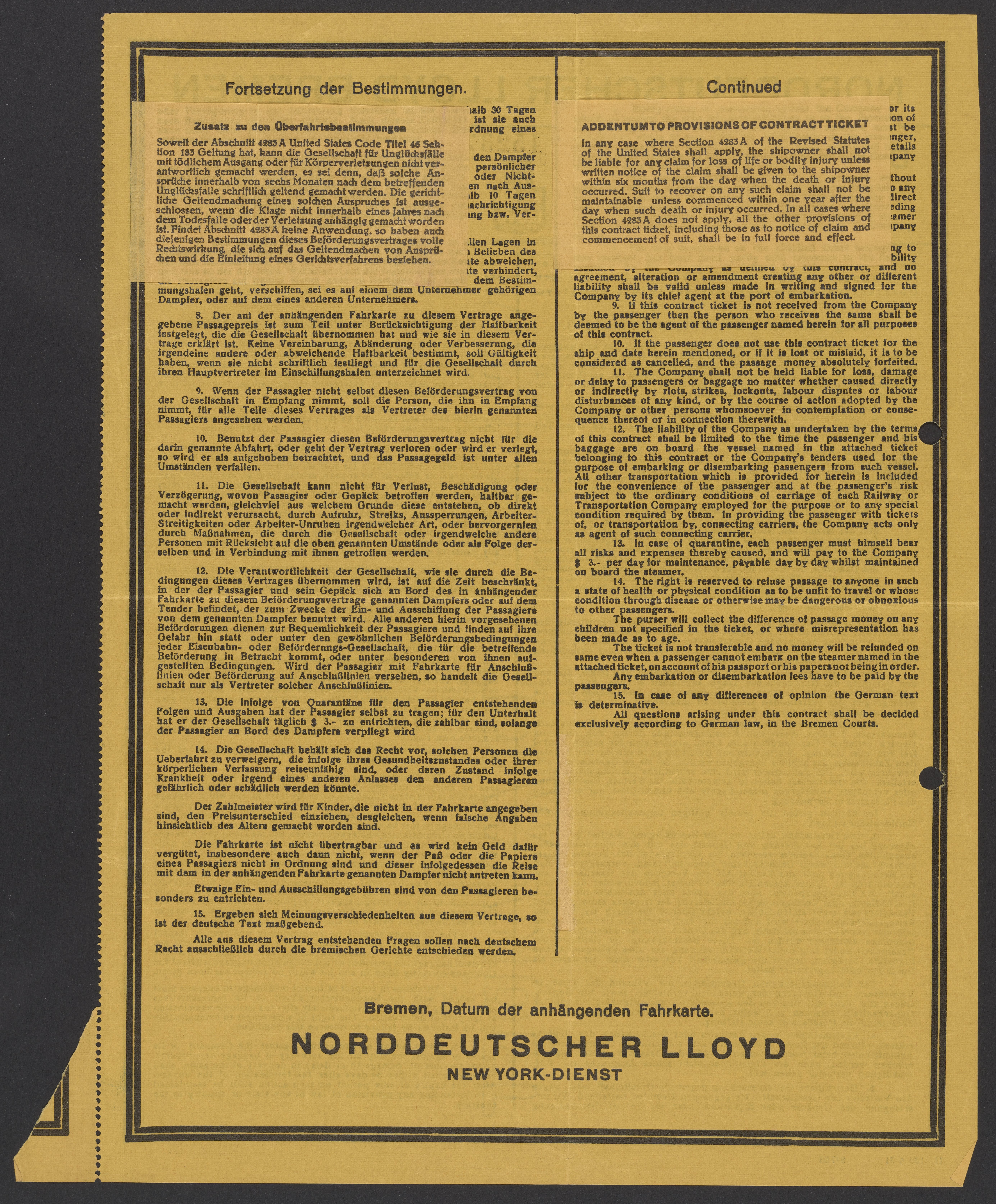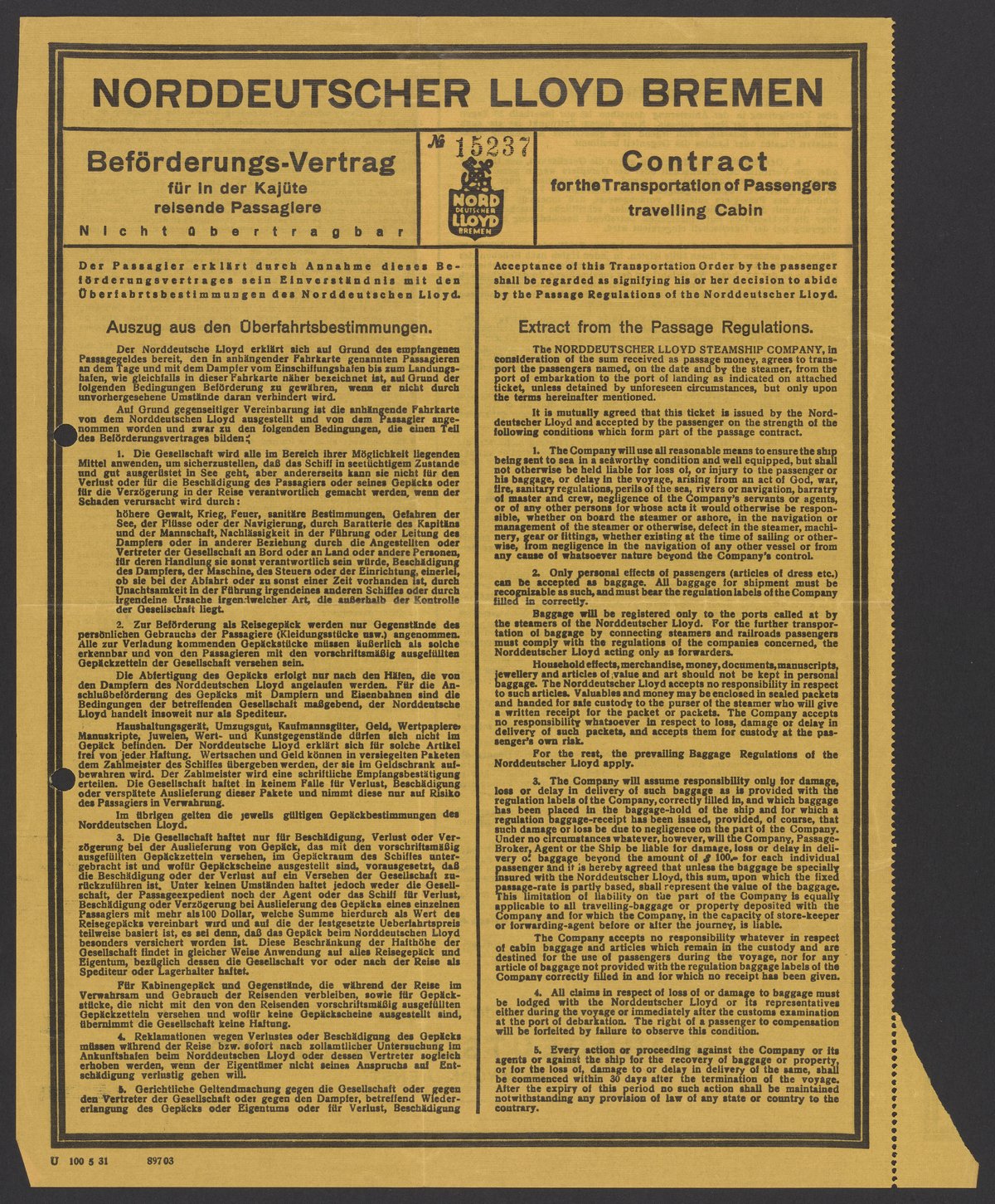 Norddeutscher Lloyd. “Contract for the Transportation of Passengers Traveling Cabin,” circa 1937. Papers of Georg and Max Bredig, Box 10, Folder 17. Science History Institute. Philadelphia. https://digital.sciencehistory.org/works/lso2kbf.