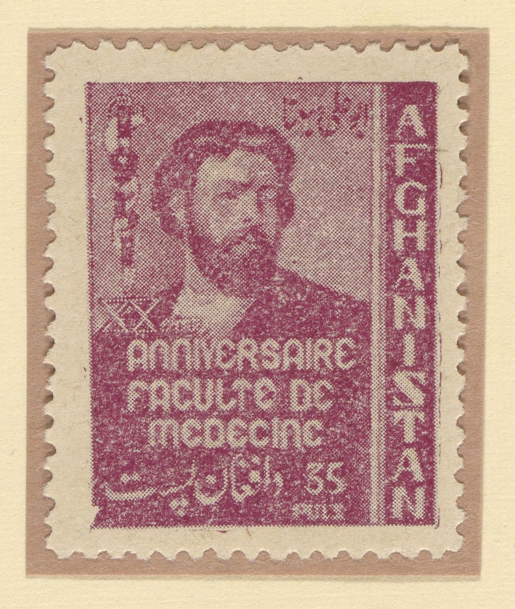 “Afghan Stamp Commemorating Avicenna (Ibn Sina),” 1951. Witco Stamp Collection, Box 1. Science History Institute. Philadelphia. https://digital.sciencehistory.org/works/lxl4hya.