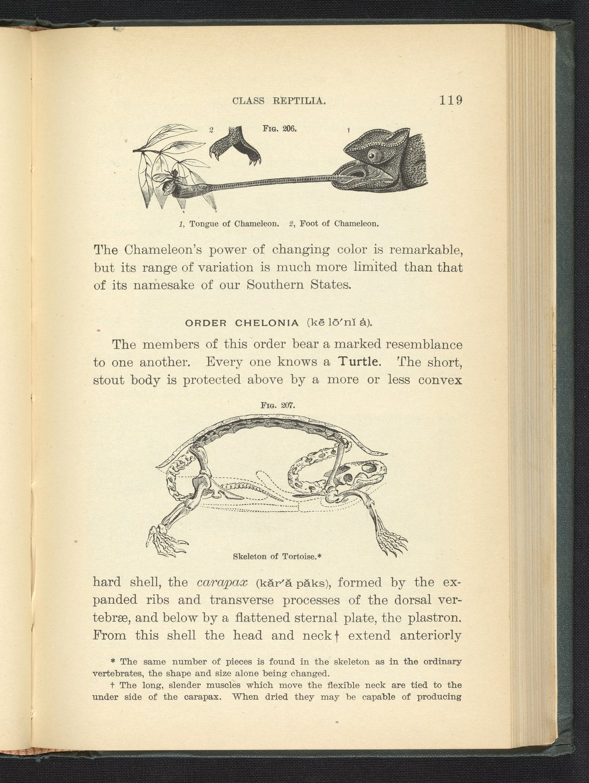 Figure 206. Tongue and Foot of Chameleon. Figure 207. Skeleton of Tortoise