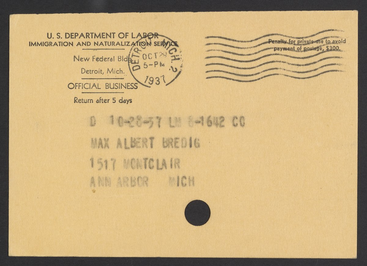 United States. Government Printing Office, and United States. Immigration and Naturalization Service. “Receipt from the United States Department of Labor,” 1940–1949. Papers of Georg and Max Bredig, Box 7, Folder 27. Science History Institute. Philadelphia. https://digital.sciencehistory.org/works/lz8hp9l.