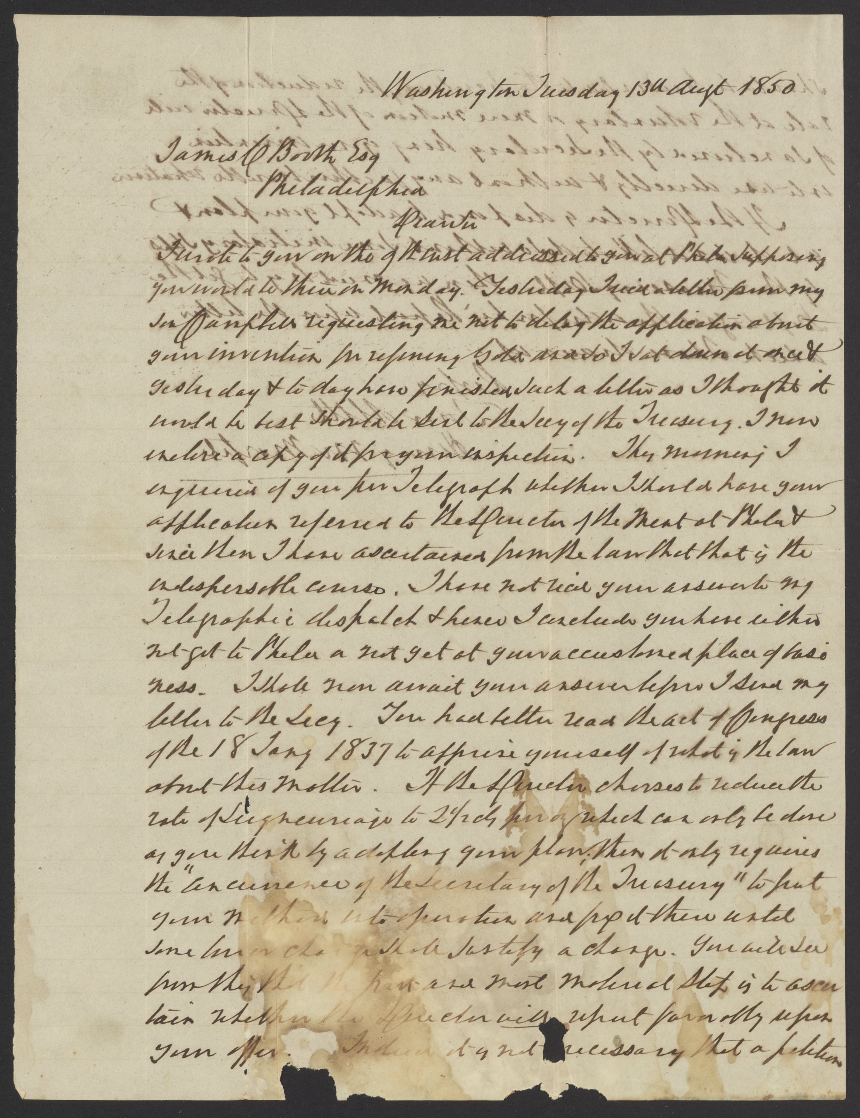 Letter 2 of 2 from Henry M. Morfit to James Curtis Booth, August 13, 1850