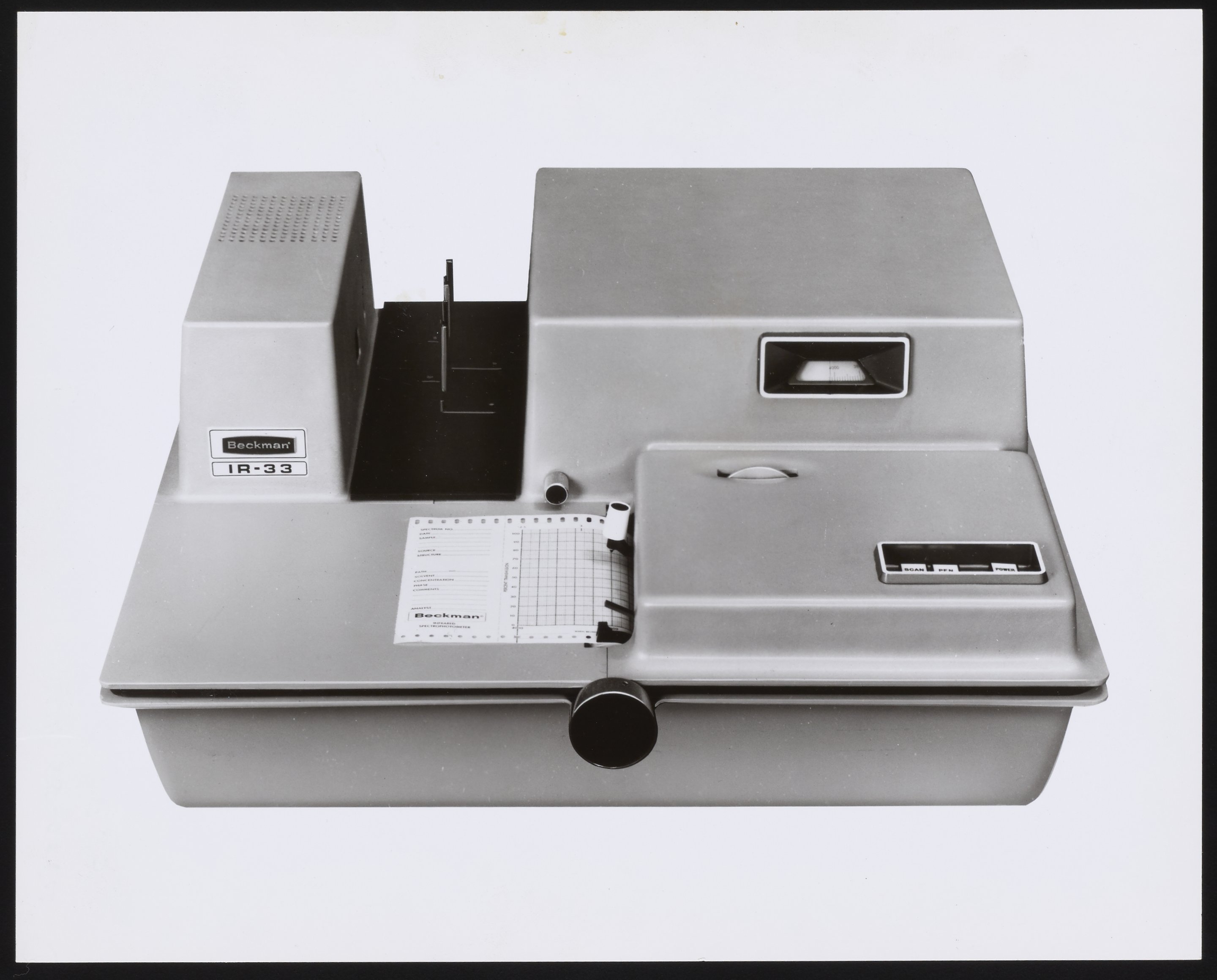“Beckman Model IR-33 Spectrophotometer,” 1970. Beckman Historical Collection, Box 55, Folder 154. Science History Institute. Philadelphia. https://digital.sciencehistory.org/works/m039k4882.