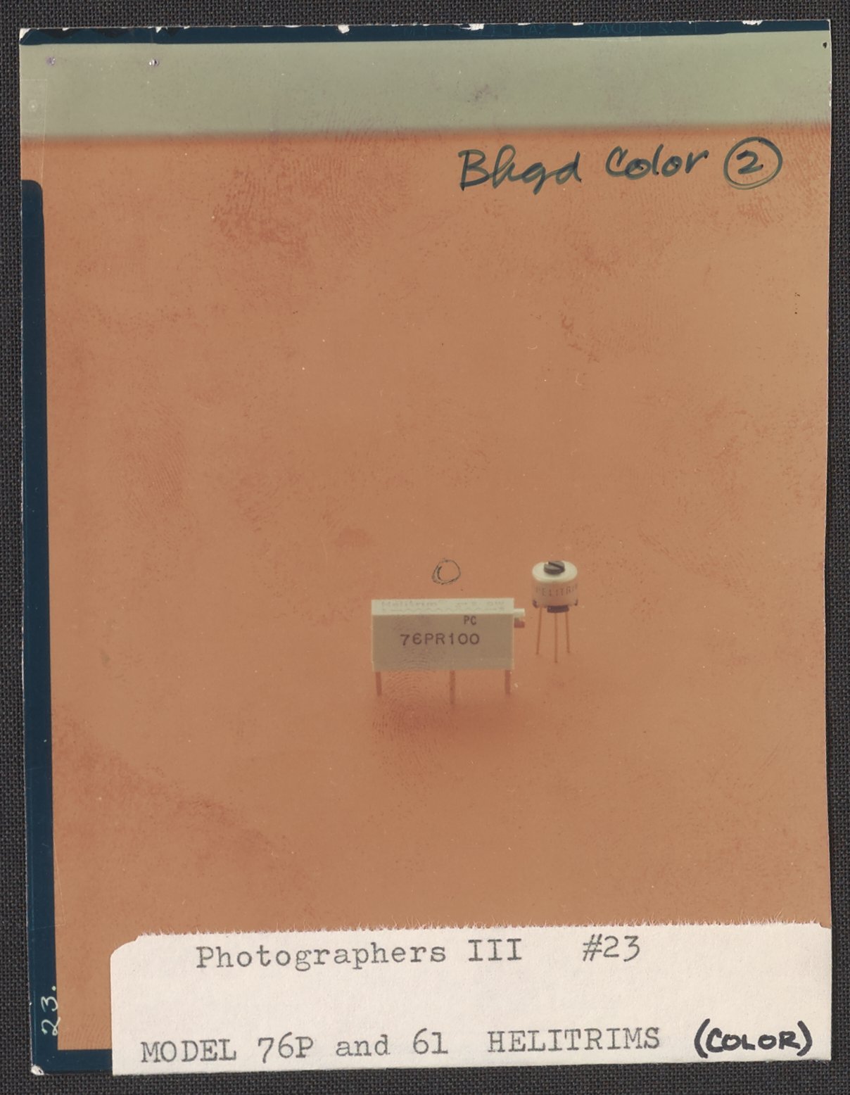 Photographers III. “Beckman Models 76P and 61 Helitrim Trimming Potentiometers,” 1960–1979. Beckman Historical Collection, Box 85. Science History Institute. Philadelphia. https://digital.sciencehistory.org/works/m039k532d.