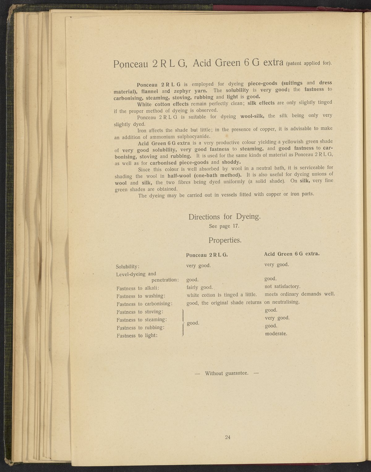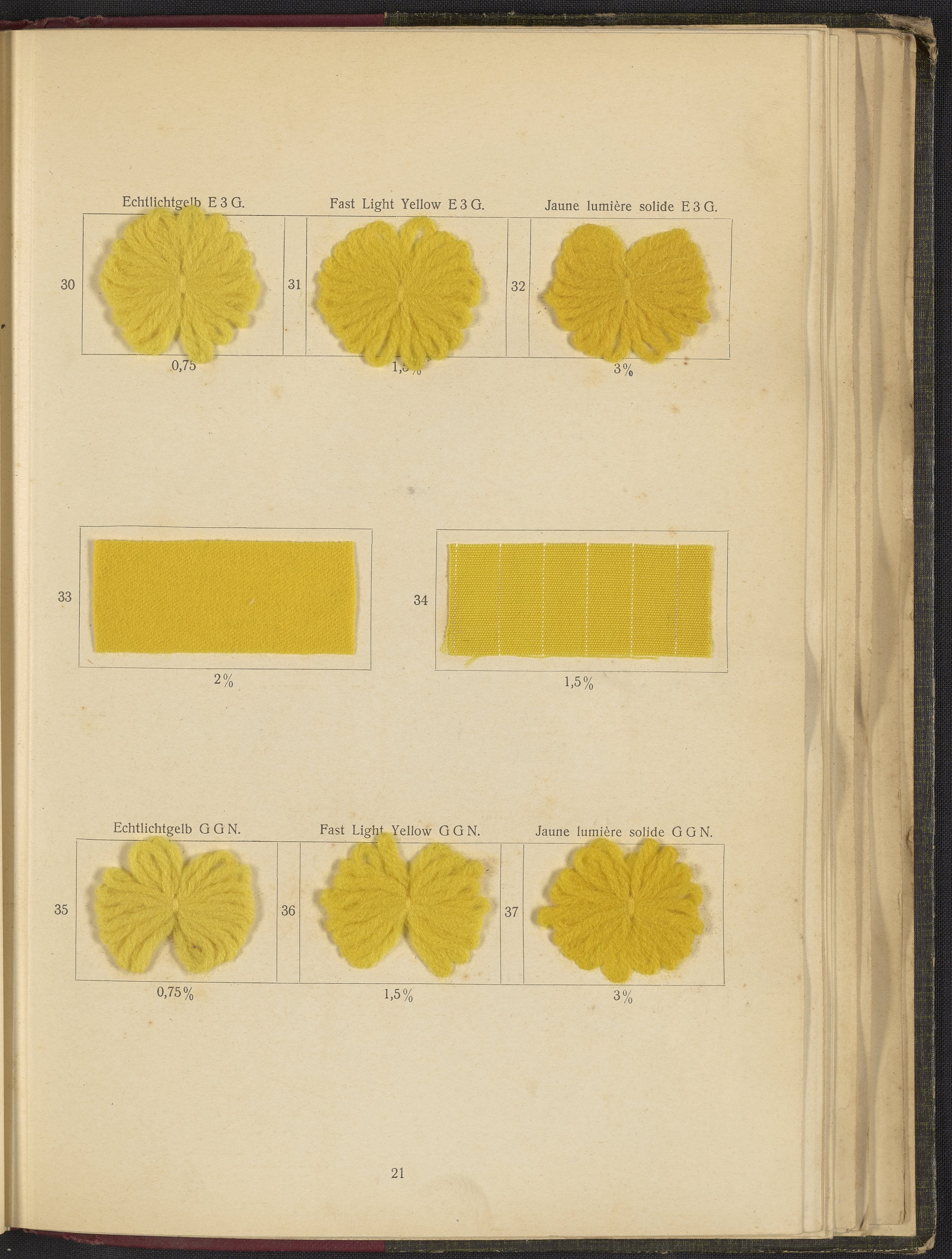 Small JPG1200 x 1597px — 455 KBLarge JPG2880 x 3832px — 2.6 MBFull-sized JPG3266 x 4346px — 3.2 MBOriginal fileTIFF — 3266 x 4346px — 40.6 MBSample book from the Bayer Company, Inc.--the North American extension of the German company, Farbenfabriken vorm. Friedrich Bayer & Co.--containing mounted dyed wool thread and swatch samples. Bayer & Co. was the first incarnation of the modern pharmaceutical company, Bayer AG, originally established to manufacture and sell synthetic dyestuffs.