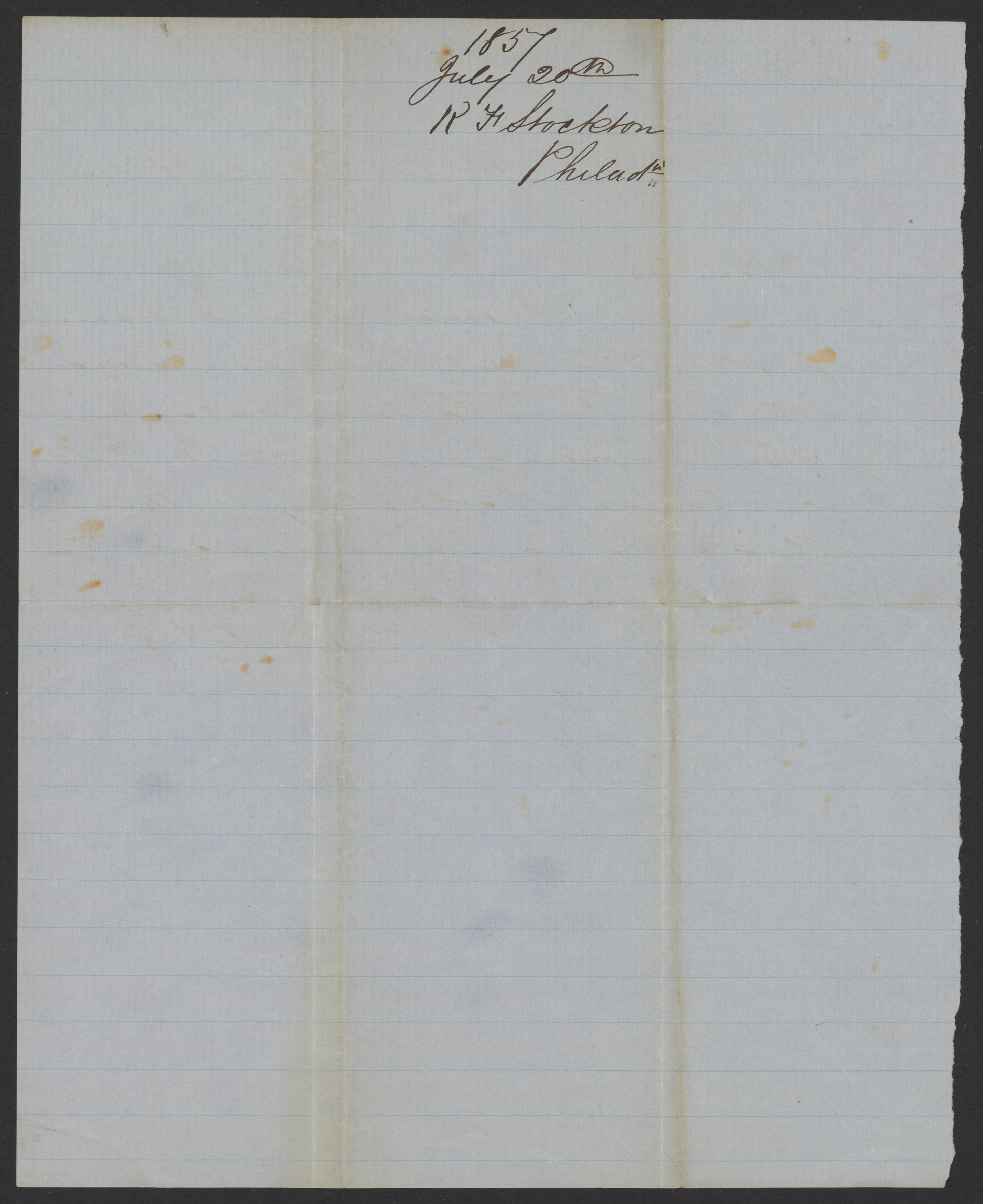 Letter from R. F. Stockton to James Curtis Booth, July 20, 1857