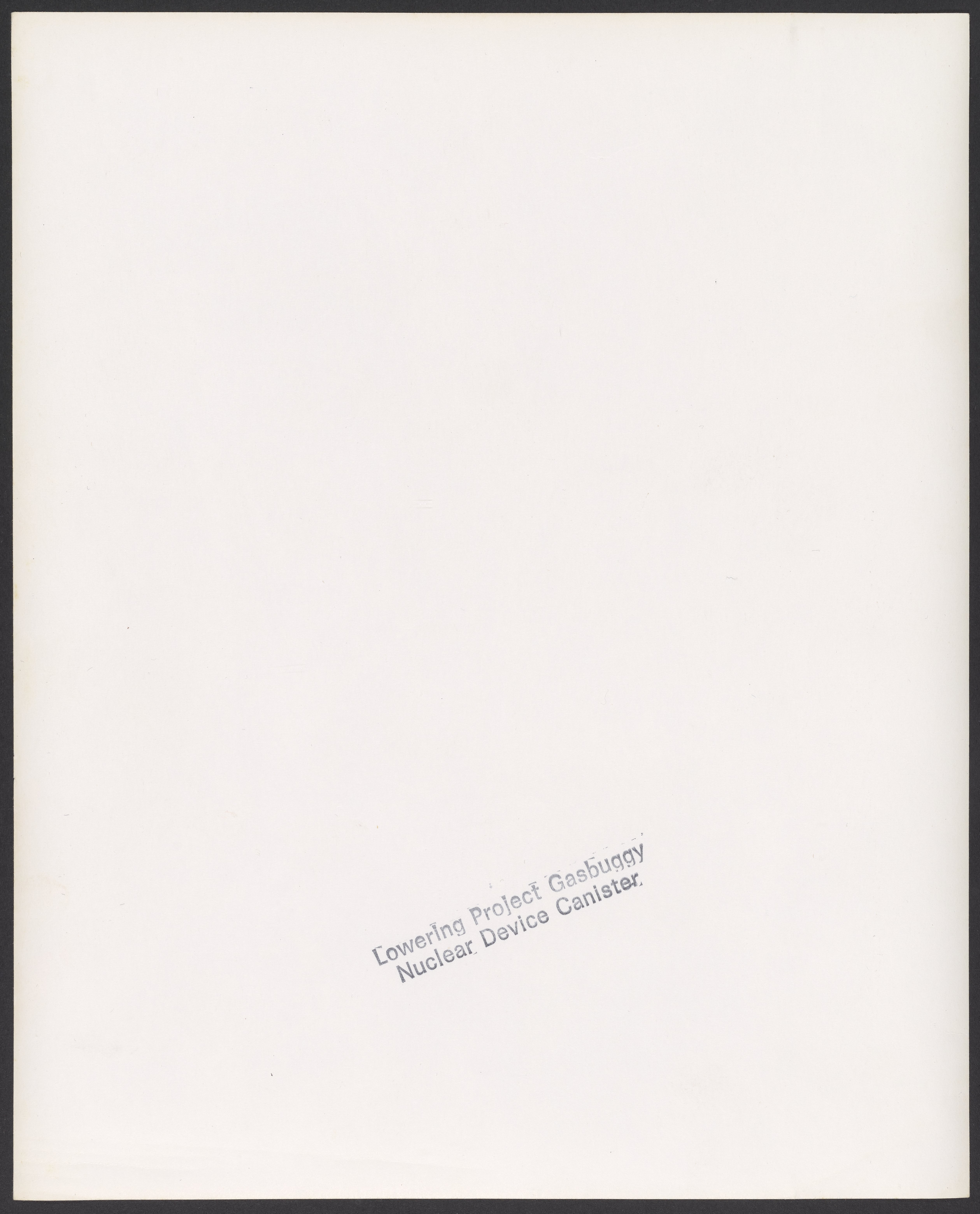 Small JPG1200 x 1472px — 266 KBLarge JPG2880 x 3532px — 1.1 MBFull-sized JPG5086 x 6238px — 2.9 MBOriginal fileTIFF — 5086 x 6238px — 90.8 MBBlack and white photograph showing the Project Gasbuggy nuclear device canister being lowered into the ground.