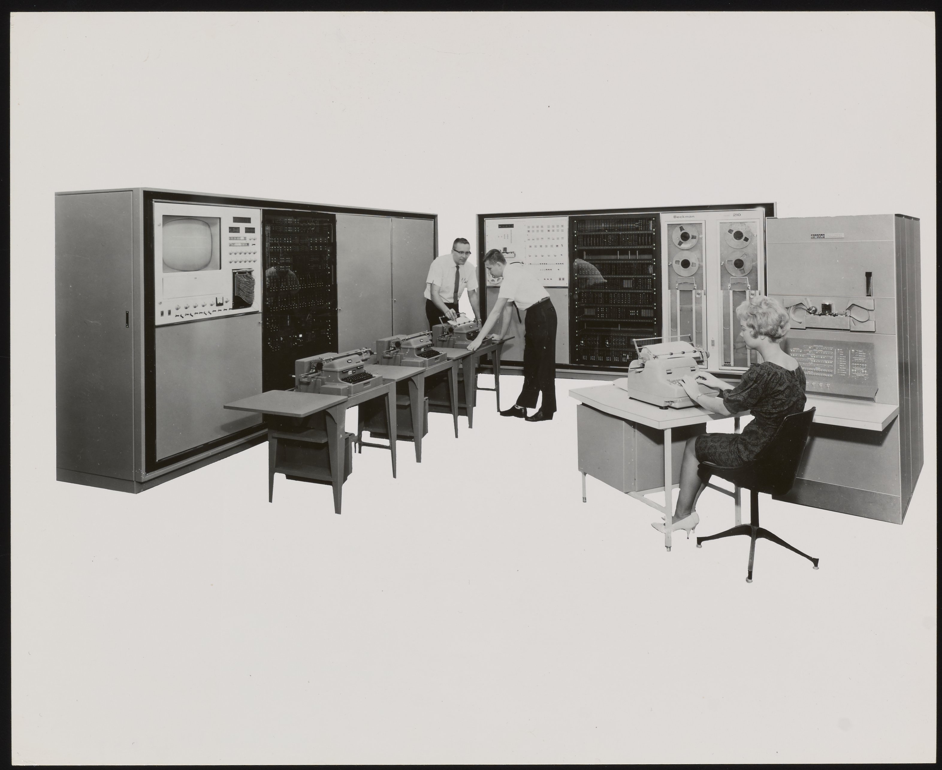 “Beckman System Computer in Use,” 1960. Beckman Historical Collection, Box 55, Folder 190. Science History Institute. Philadelphia. https://digital.sciencehistory.org/works/mc87pq25t.