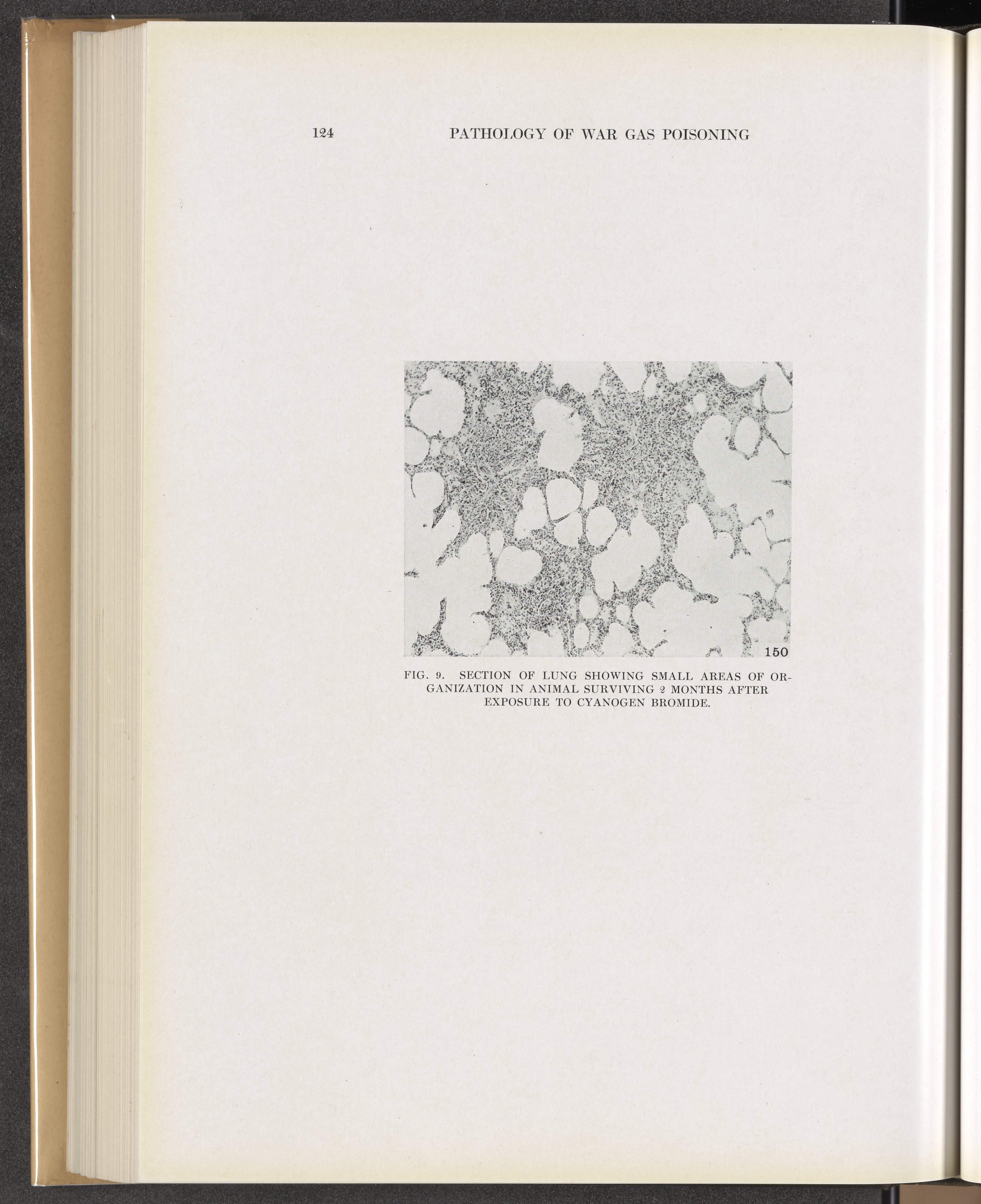 Winternitz, M. C. (Milton C.). “Fig. 9: Section of Lung Showing Small Areas of Organization in Animal Surviving 2 Months after Exposure to Cyanogen Bromide.” Collected Studies on the Pathology of War Gas Poisoning. New Haven, Connecticut: Yale University Press, 1920. https://digital.sciencehistory.org/works/mc87pq43r.