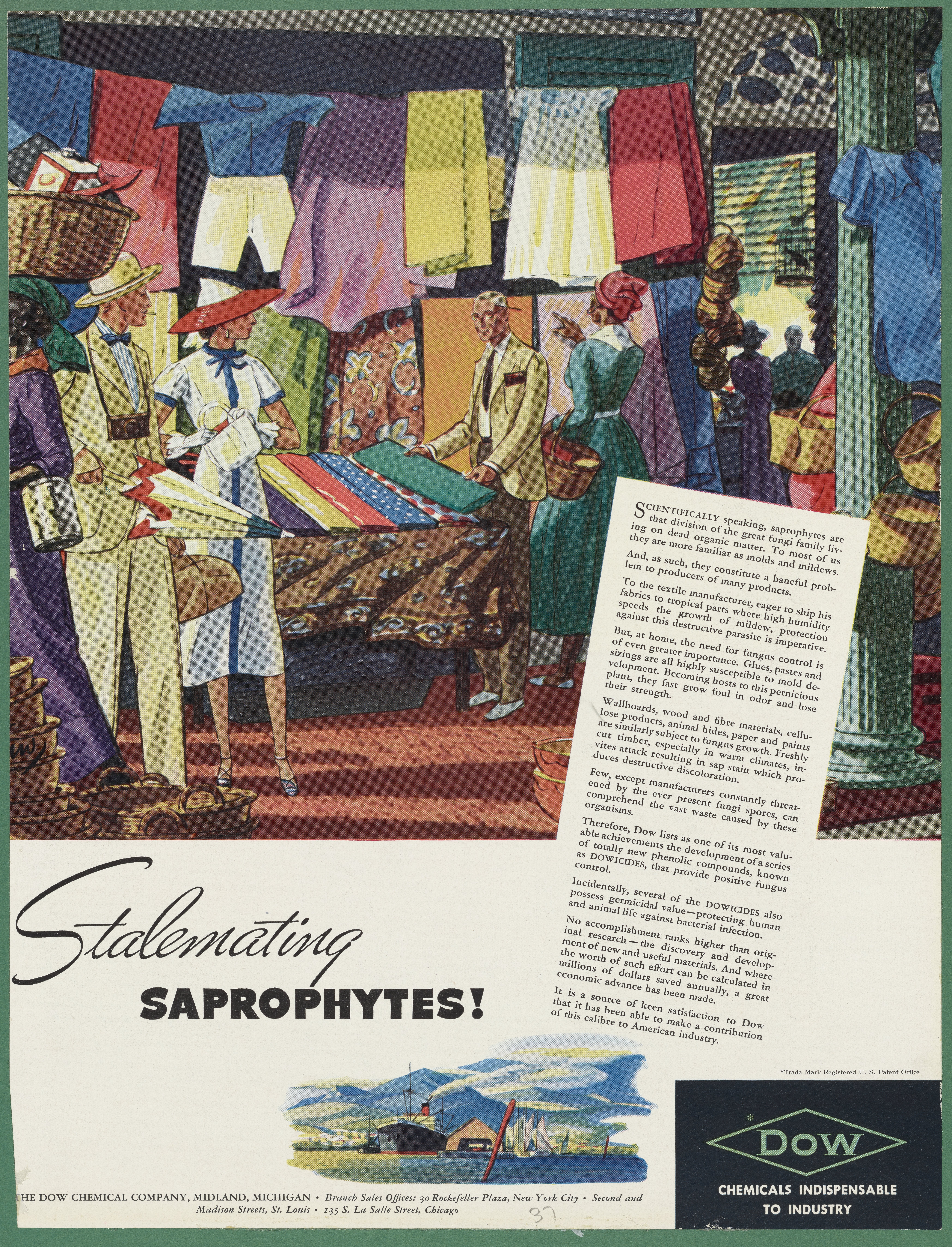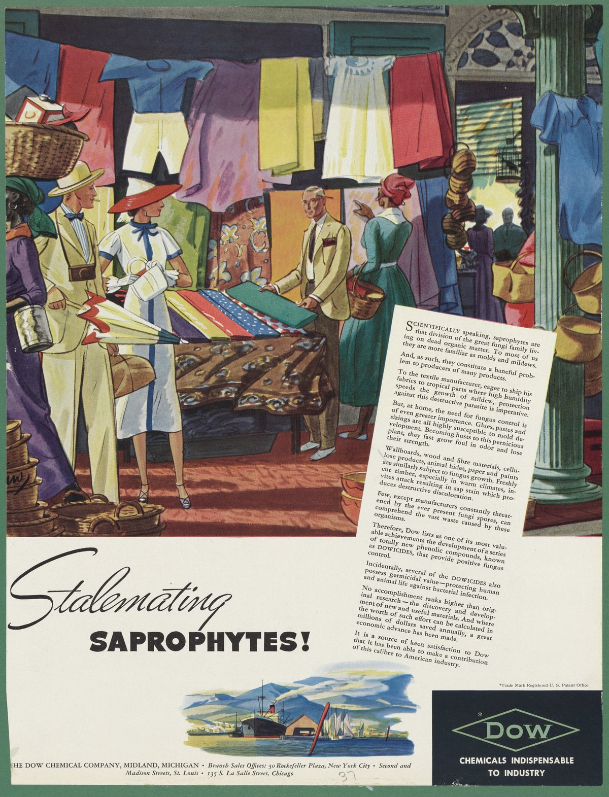 Dow Chemical Company. “Stalemating Saprophytes!,” 1937. Advertisements from the Dow Chemical Historical Collection, Box 1. Science History Institute. Philadelphia. https://digital.sciencehistory.org/works/mc87pr42p.