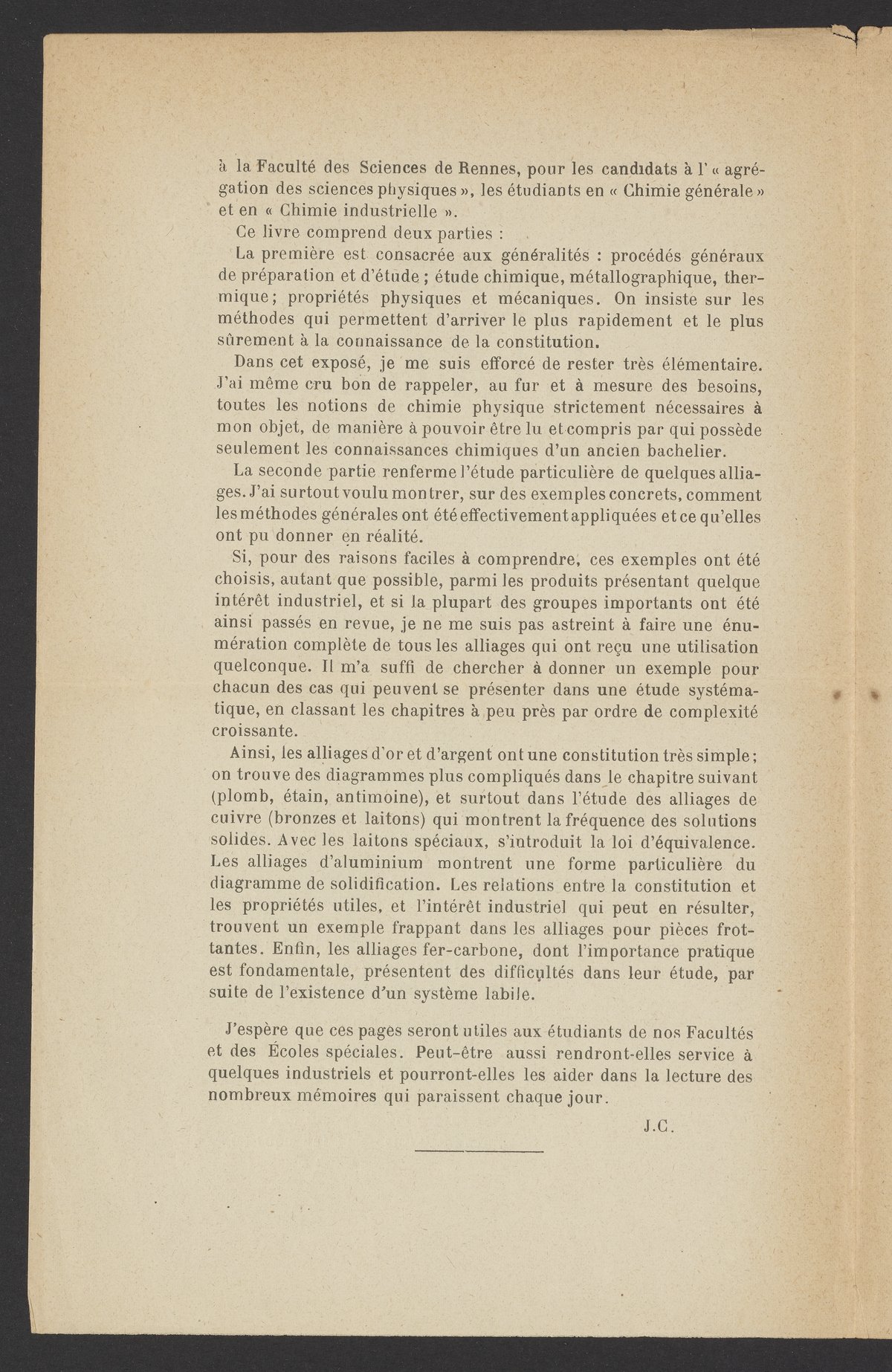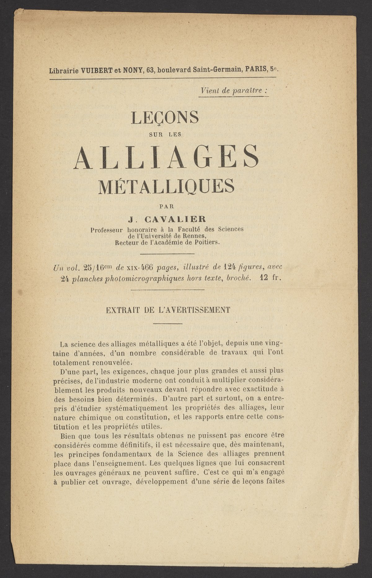 “Leçons Sur Les Alliages Métalliques.” Veuibert et Nony, circa 1921. Papers of Georg and Max Bredig, Box 3, Folder 5. Science History Institute. Philadelphia. https://digital.sciencehistory.org/works/me1dv97.