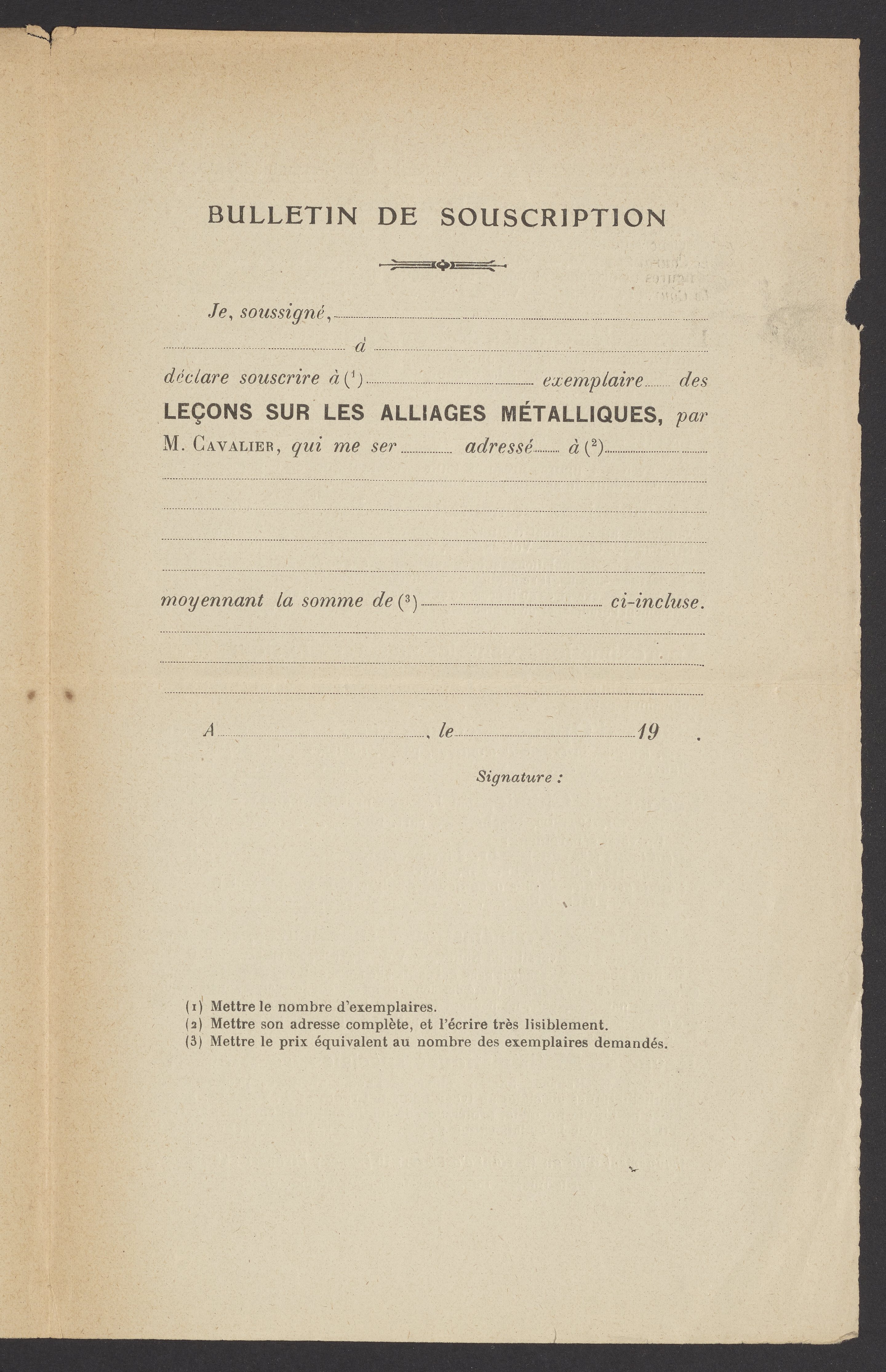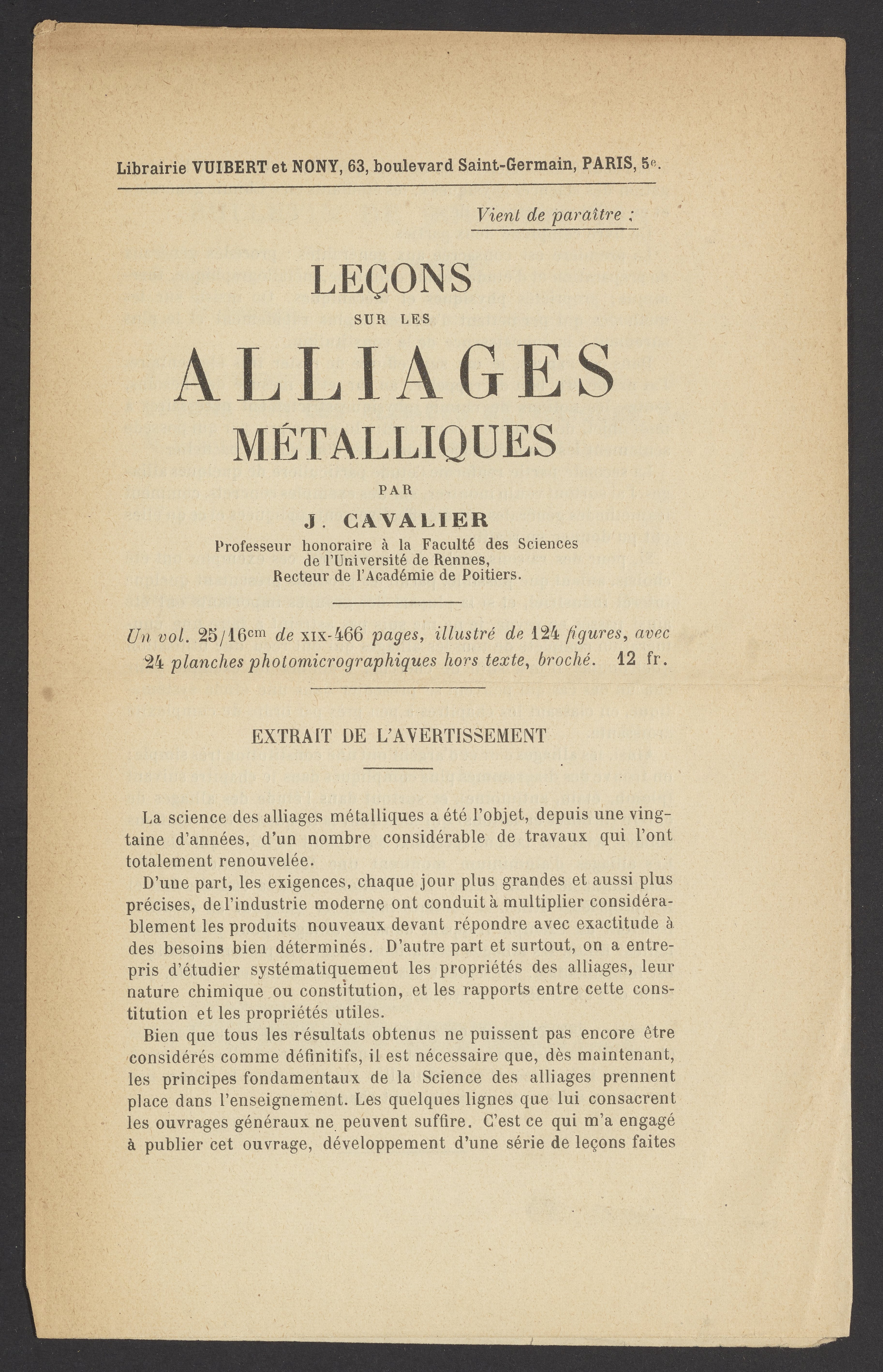 “Leçons Sur Les Alliages Métalliques.” Veuibert et Nony, circa 1921. Papers of Georg and Max Bredig, Box 3, Folder 5. Science History Institute. Philadelphia. https://digital.sciencehistory.org/works/me1dv97.