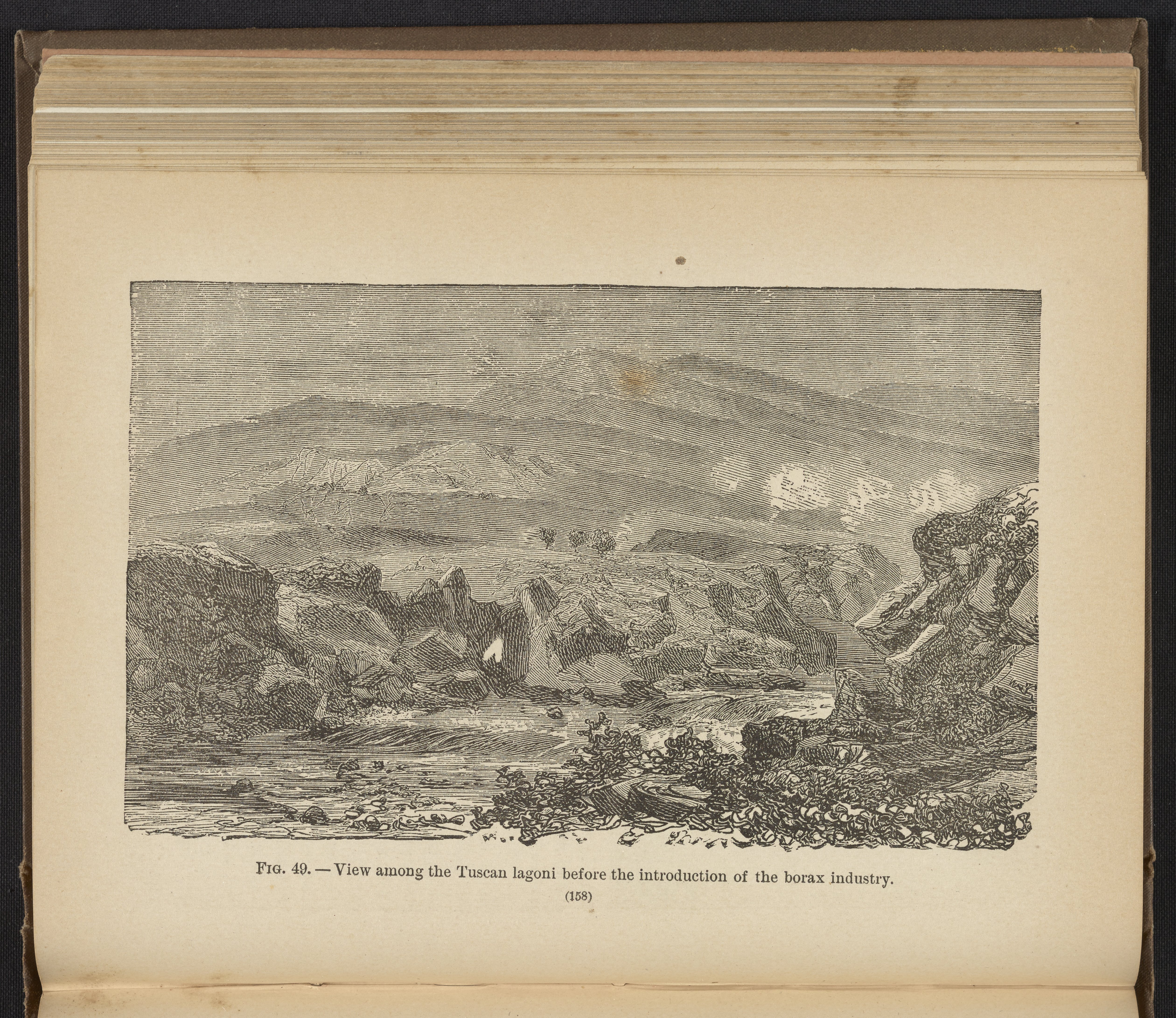Appleton, John Howard. “Figure 49: View of the Tuscan Landscape before the Introduction of the Borax Industry.” Chemistry, Developed by Facts and Principles Drawn Chiefly from the Non-Metals. Providence, Rhode Island: Providence Lithograph Company, 1884. Science History Institute. Philadelphia. https://digital.sciencehistory.org/works/mfo6adw.