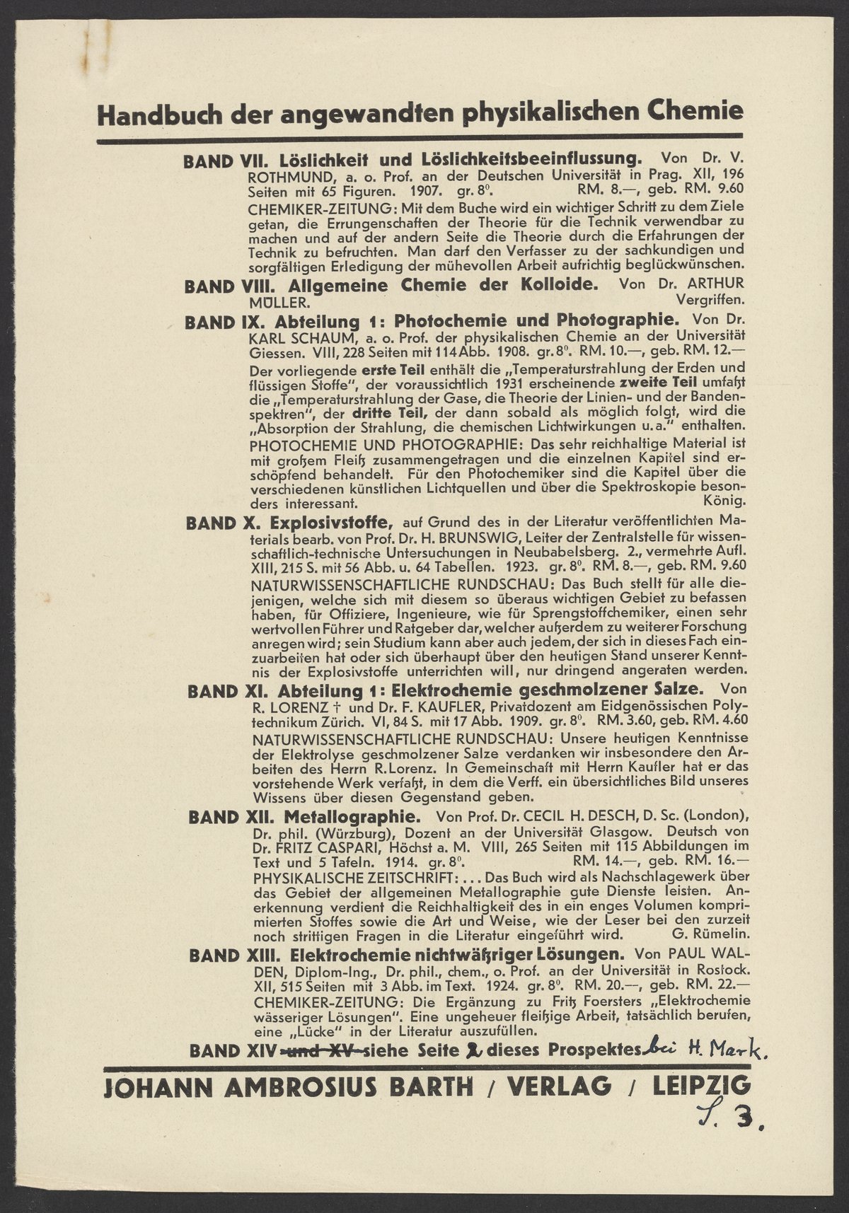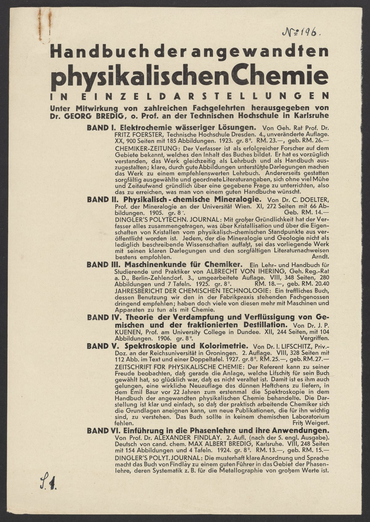 Handbuchderangewandten Physikalischen Chemie In Einzeldarstellungen