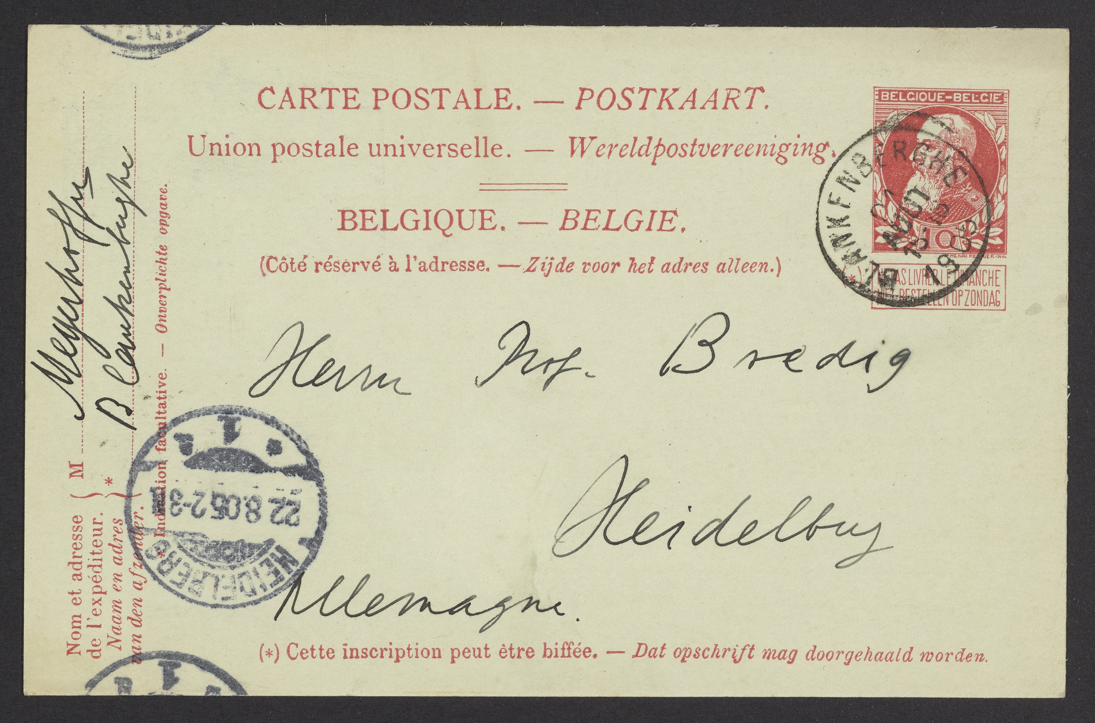 Postcard from Wilhelm Meyerhoffer to Georg Bredig, August 1905