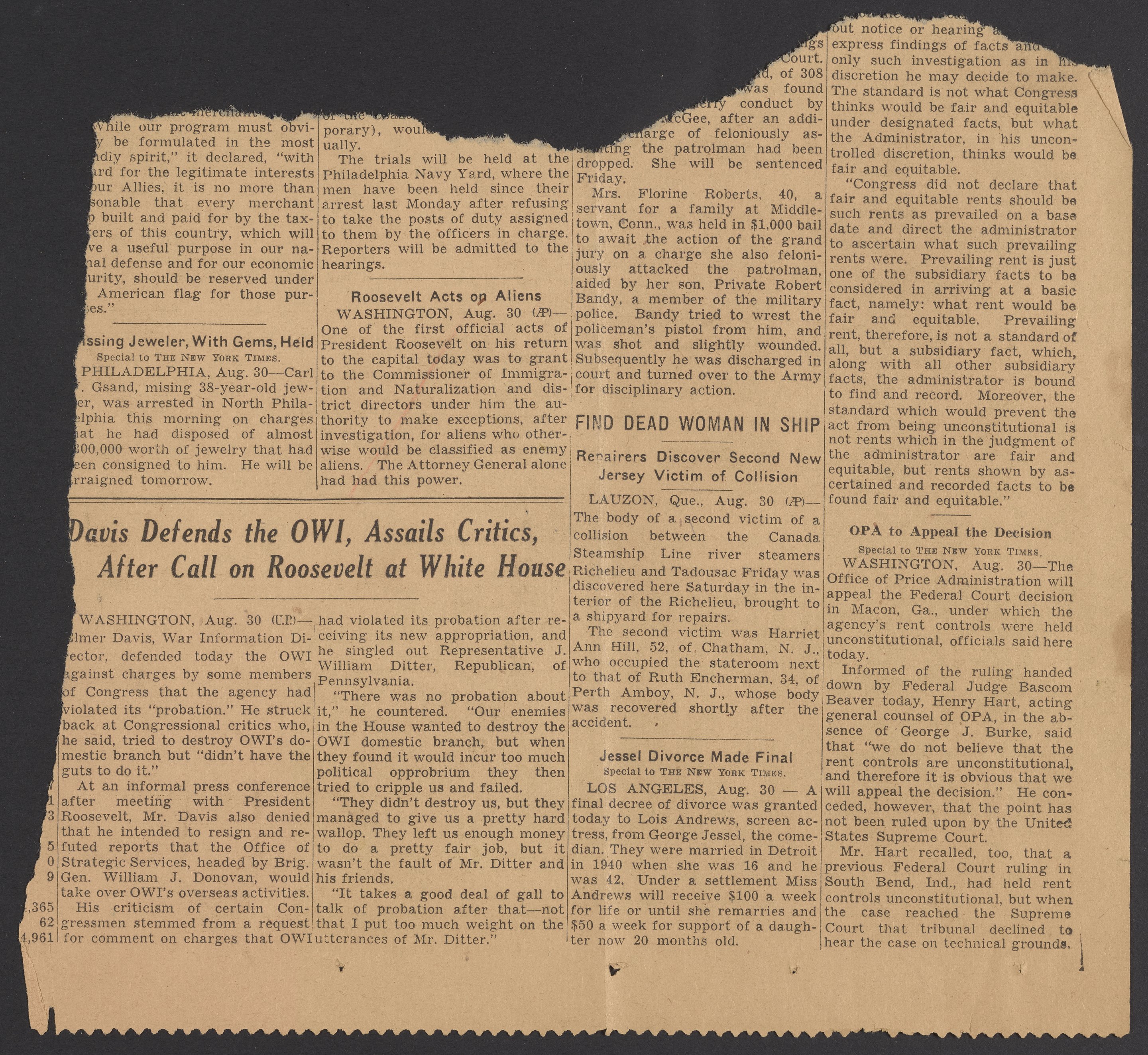 “Roosevelt Acts on Aliens,” August 1943. Papers of Georg and Max Bredig, Box 10, Folder 26. Science History Institute. Philadelphia. https://digital.sciencehistory.org/works/mheyikx.