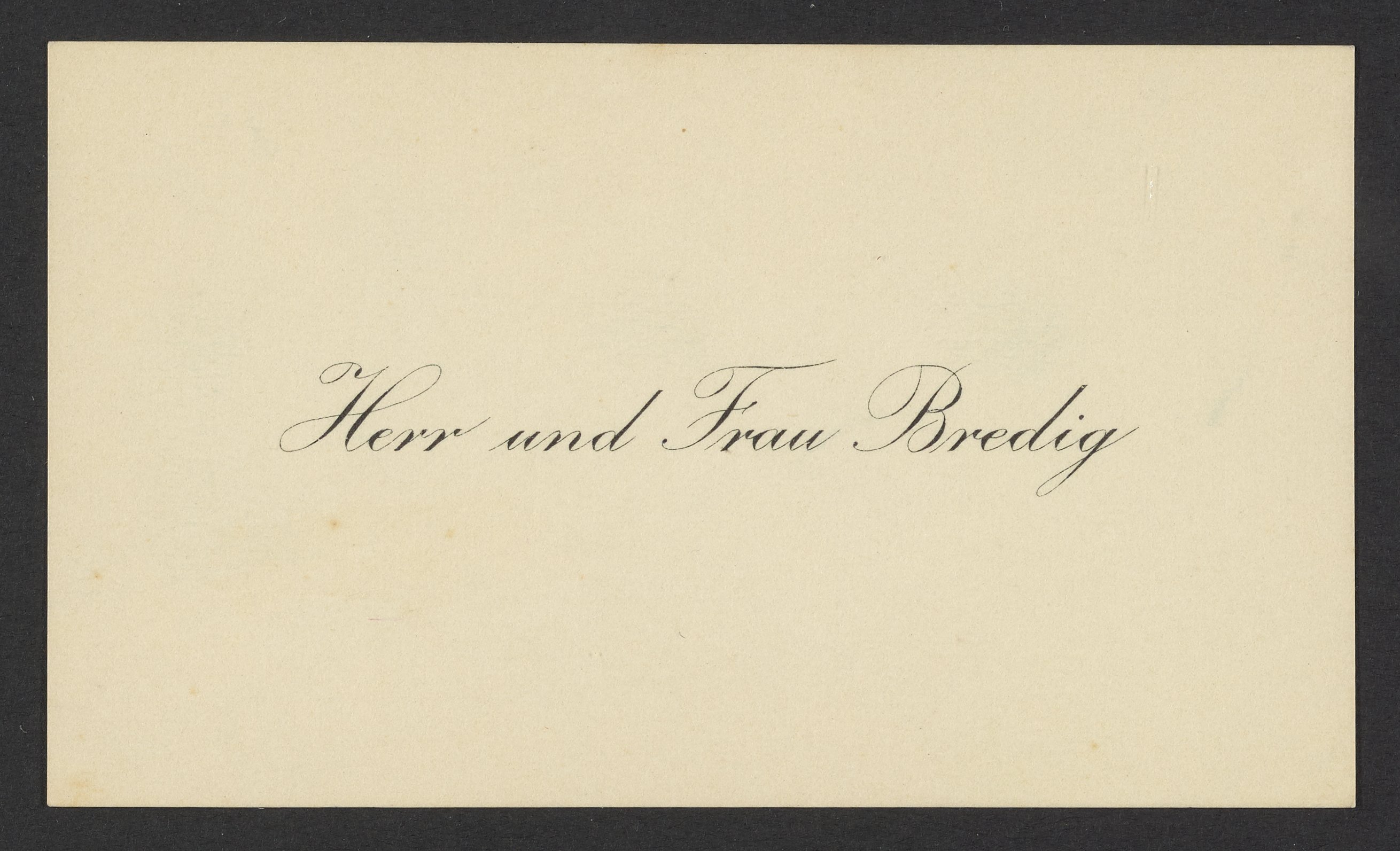 Calling card belonging to Herr and Frau Bredig