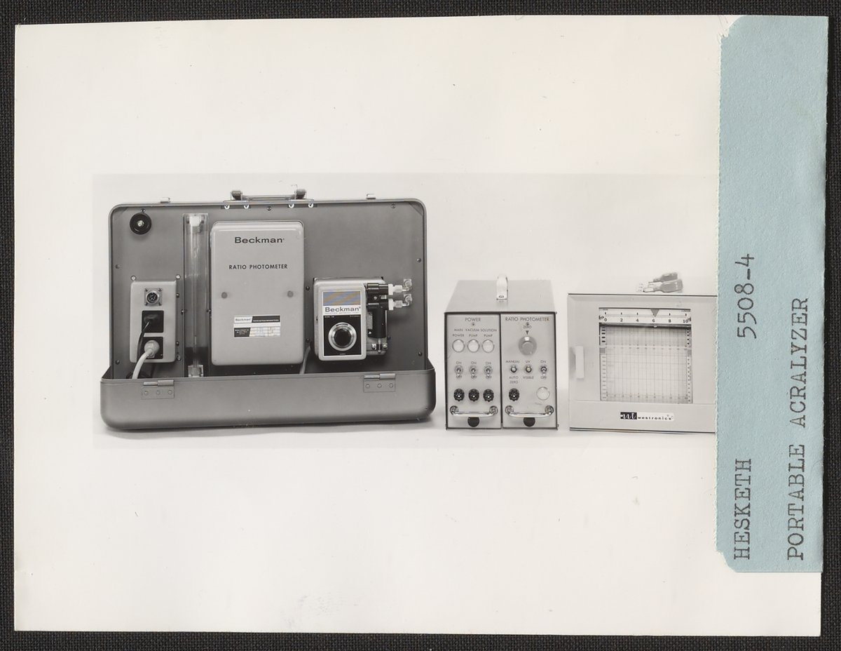 Hesketh, Dean D. “Beckman Portable Acralyzer,” n.d. Beckman Historical Collection, Box 84. Science History Institute. Philadelphia. https://digital.sciencehistory.org/works/mp48sc959.