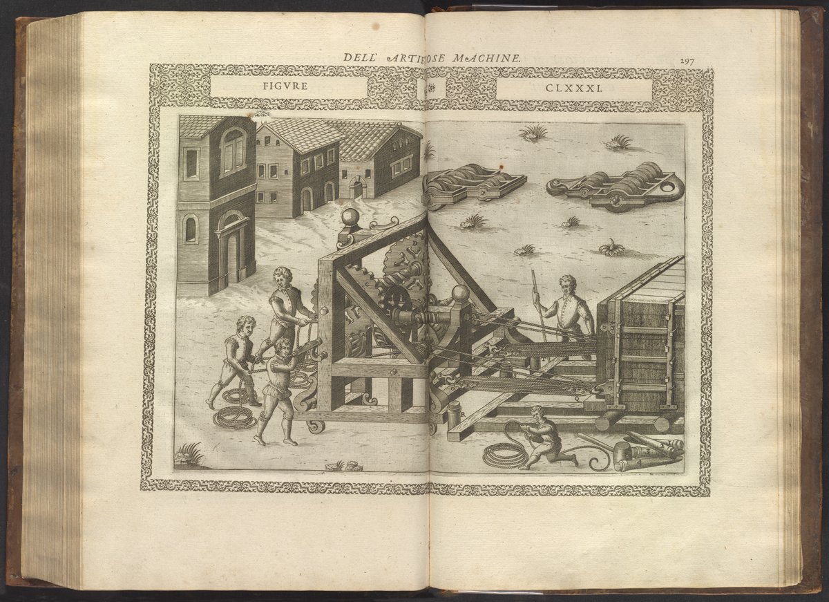 Ramelli, Agostino. “Plate 180: Machine for Moving Heavy Weights.” In Le Diverse Et Artificiose Machine Del Capitano Agostino Ramelli. Paris, France, 1588. https://digital.sciencehistory.org/works/mp48sc99d.
