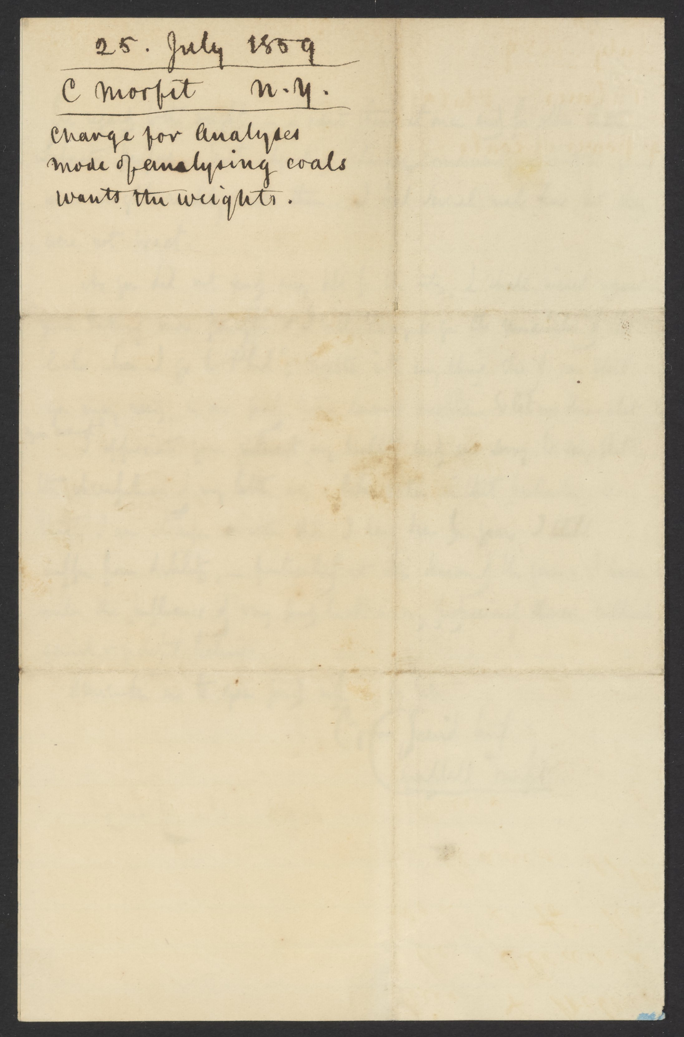 Small JPG1200 x 1826px — 307 KBFull-sized JPG2193 x 3337px — 782 KBOriginal fileTIFF — 2193 x 3337px — 21.0 MBCampbell Morfit (1820-1897), a distinguished chemist from the United States, co-editor with James Curtis Booth (1810-1888) of the Encyclopedia of Chemistry (1850), writes to thank Booth for the combustion tubes.