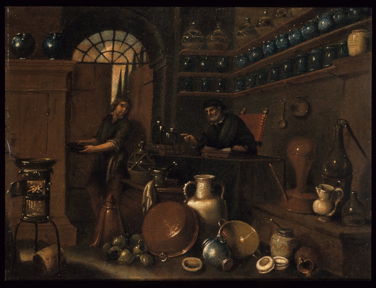 Valentini, Giovanni Domenico. Interior of an Apothecary's Shop. Oil paint (paint), canvas (textile material), 1600–1699. Science History Institute. Philadelphia. https://digital.sciencehistory.org/works/ms35t861q.