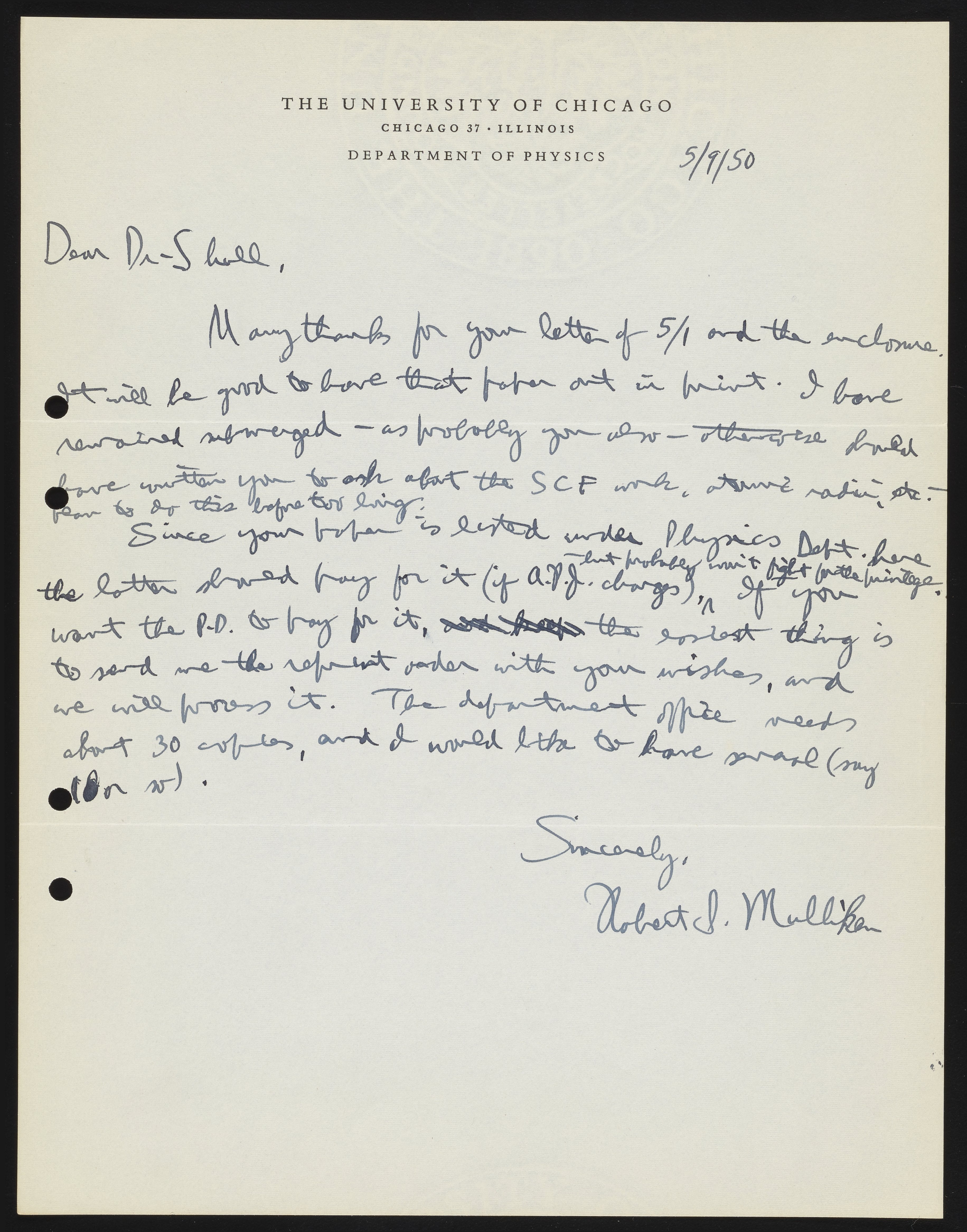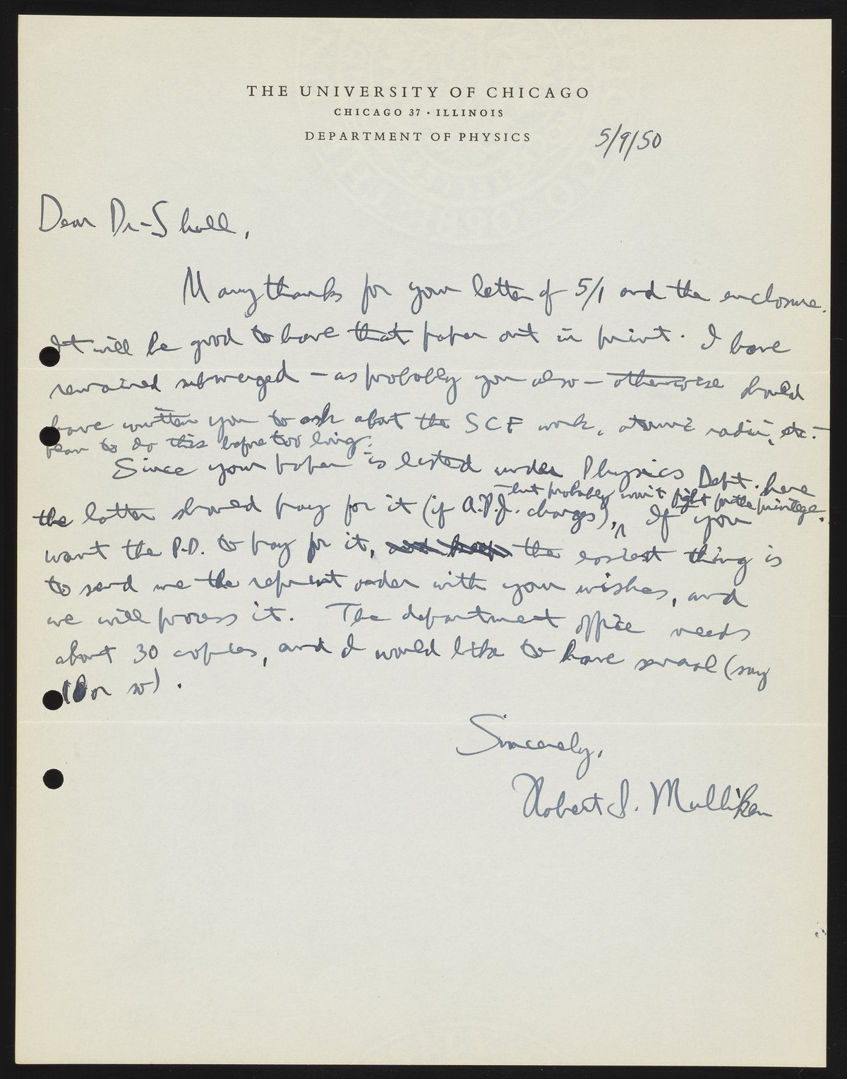 Letter from Robert S. Mulliken to Harrison Shull, 1950