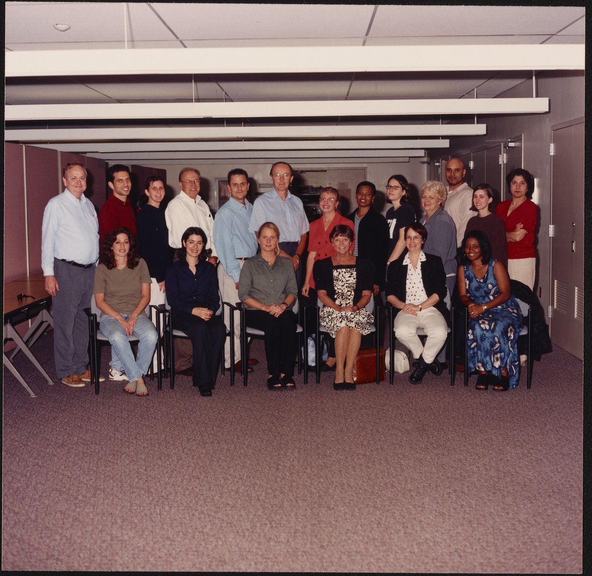 A color photograph of the Institute for Scientific Information (ISI) staff. The group of twenty, posed in two rows, had gathered to celebrate the 75th birthday of ISI's founder Eugene Garfield (1925-2017).
