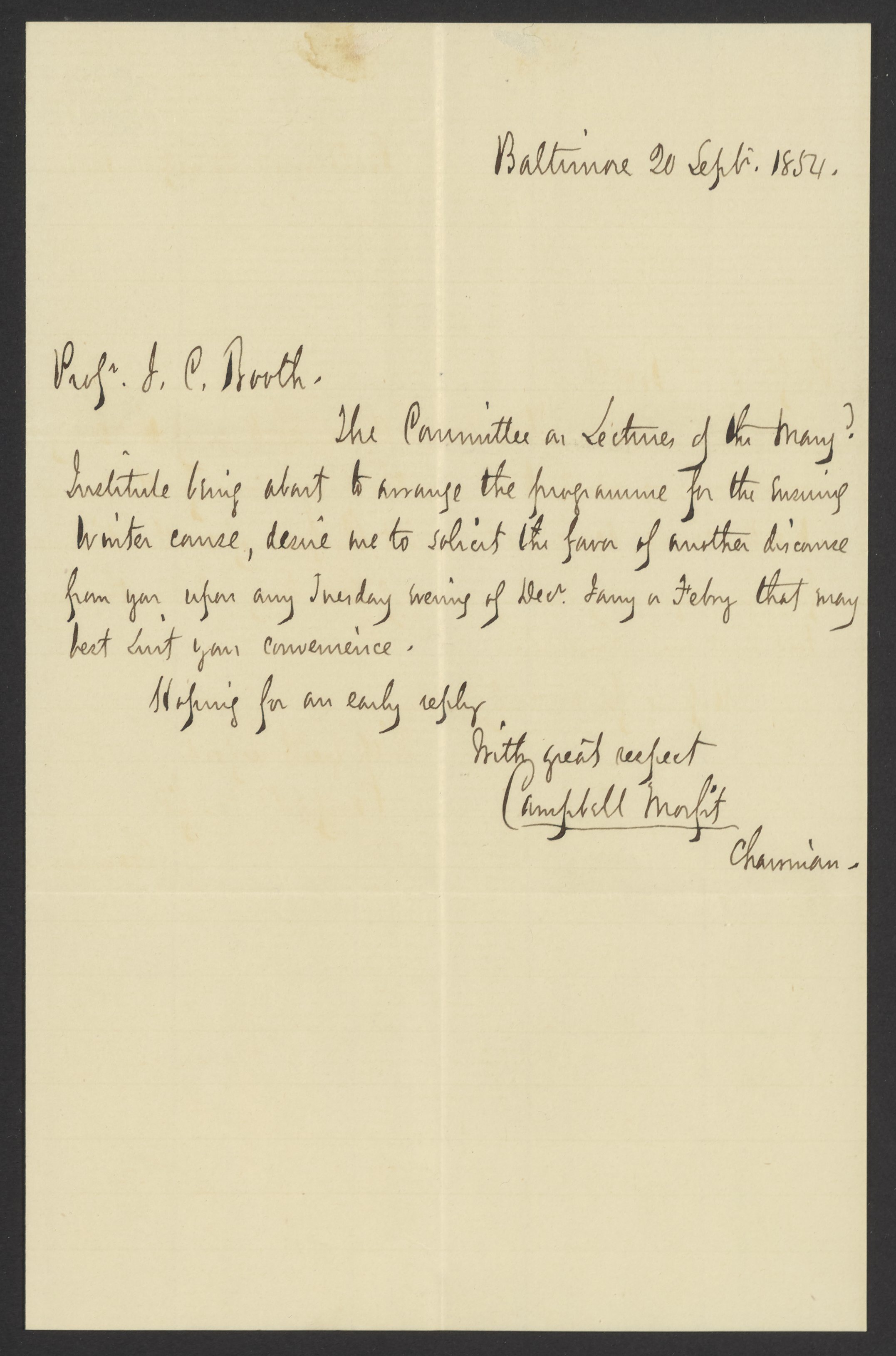 Letter from Campbell Morfit to James Curtis Booth, September 20, 1854