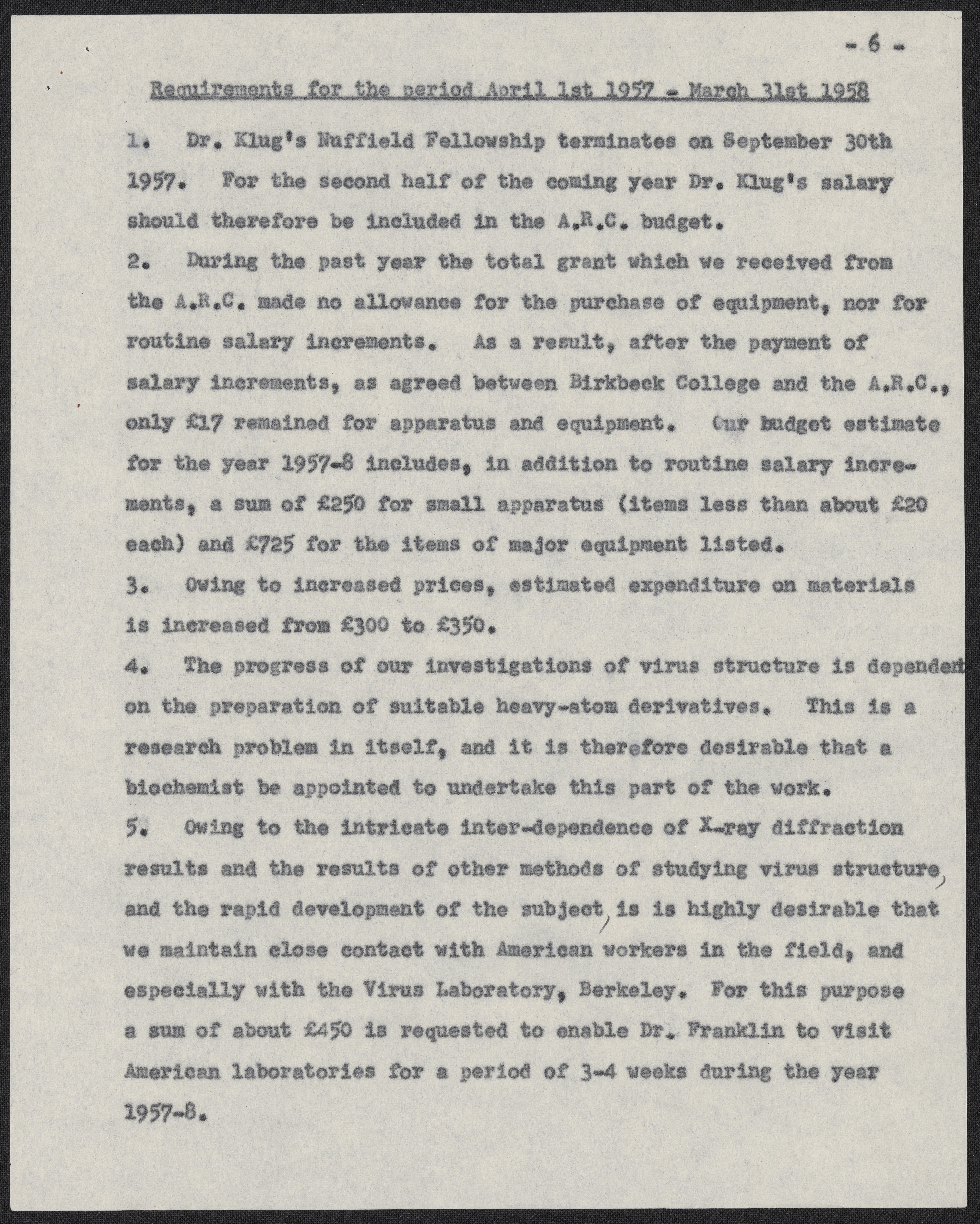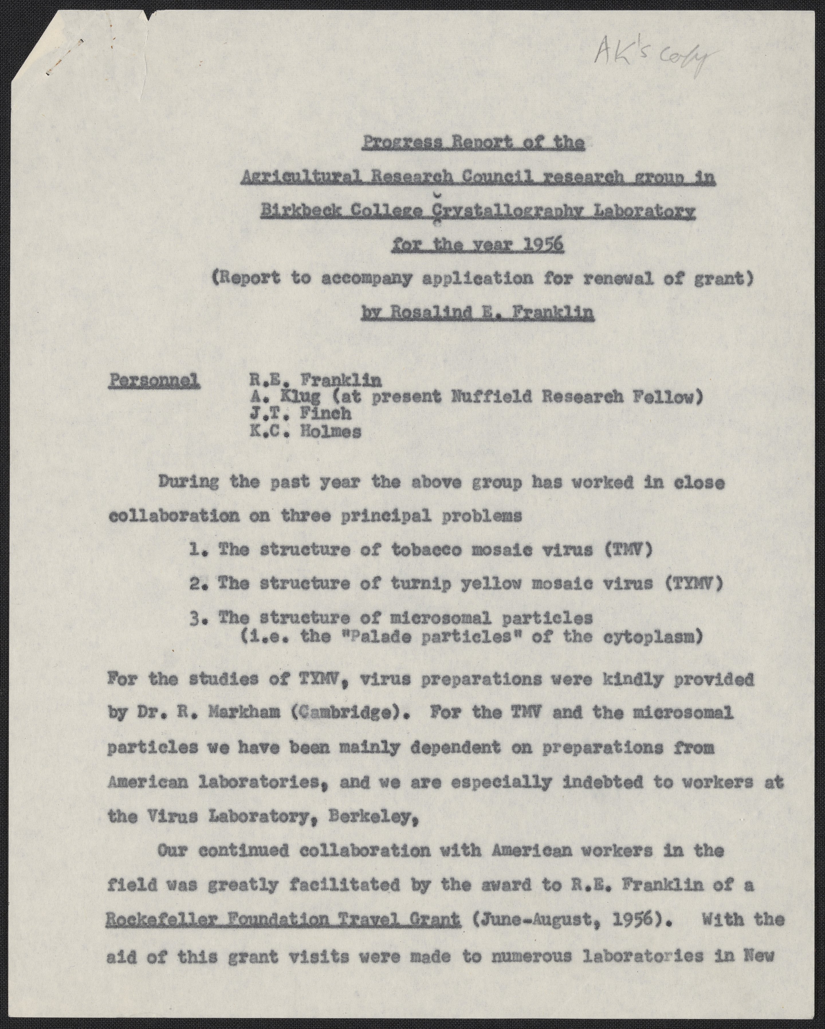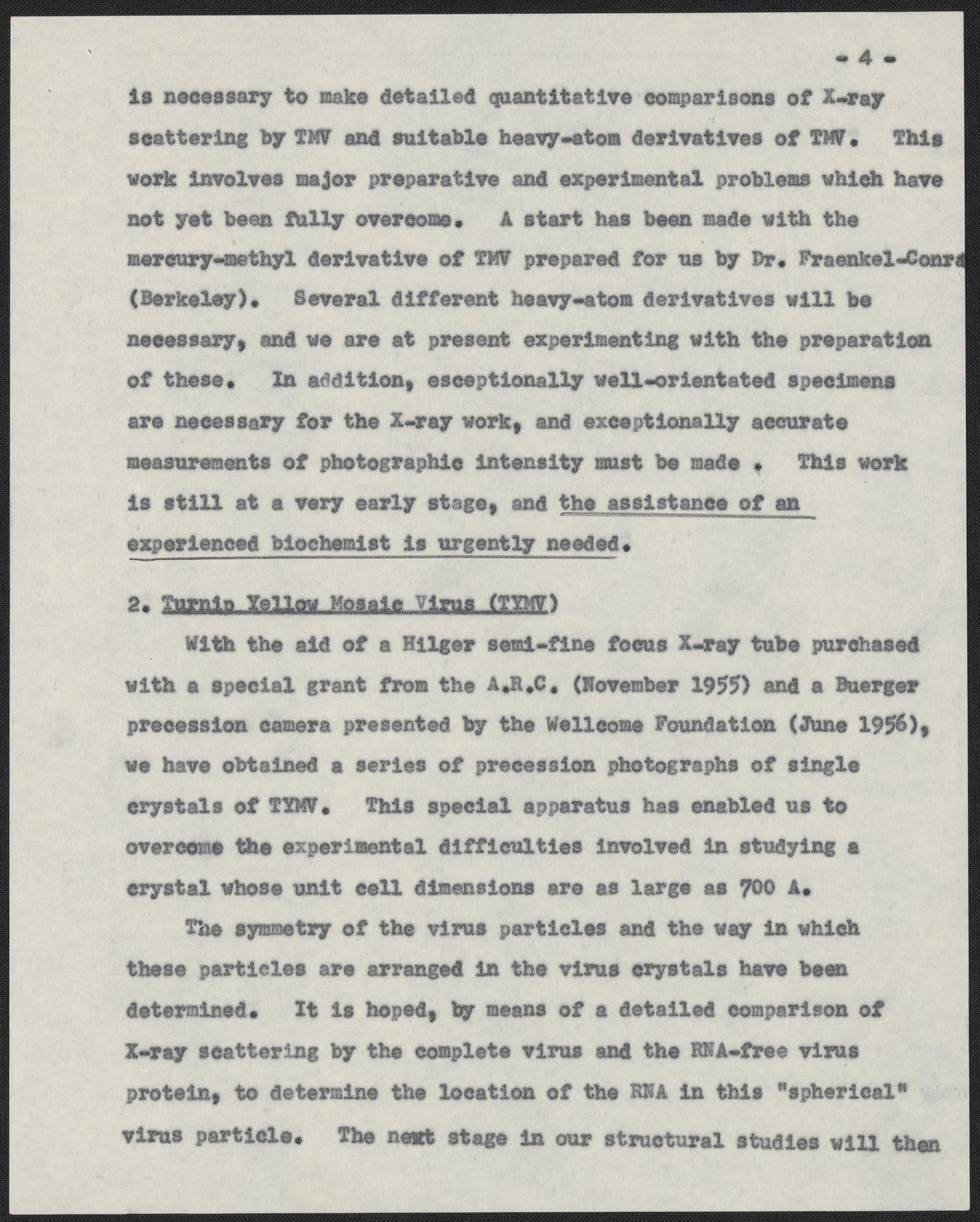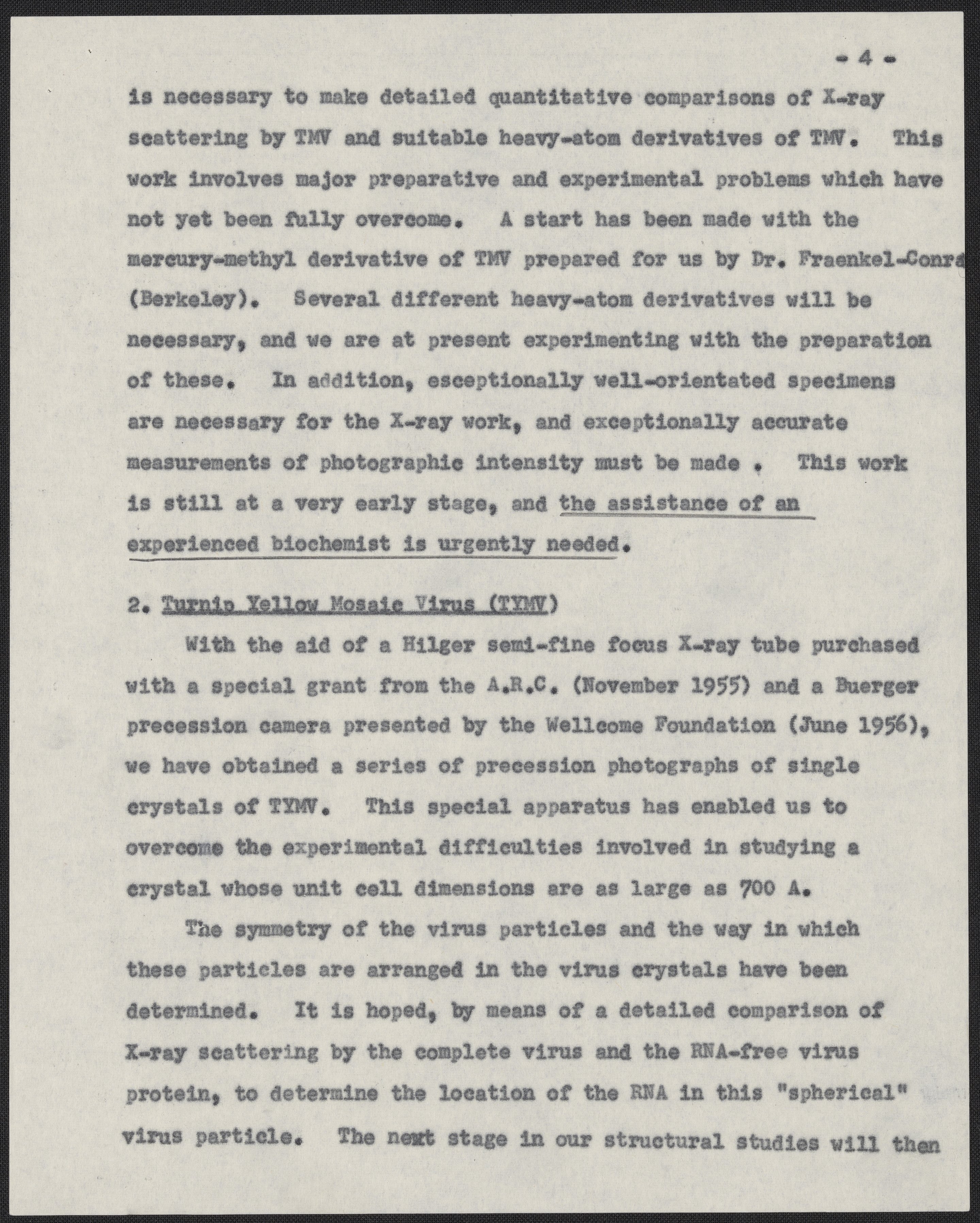 Progress Report of the Agricultural Research Council research group in Birkbeck College Crystallography Laboratory for the year 1956