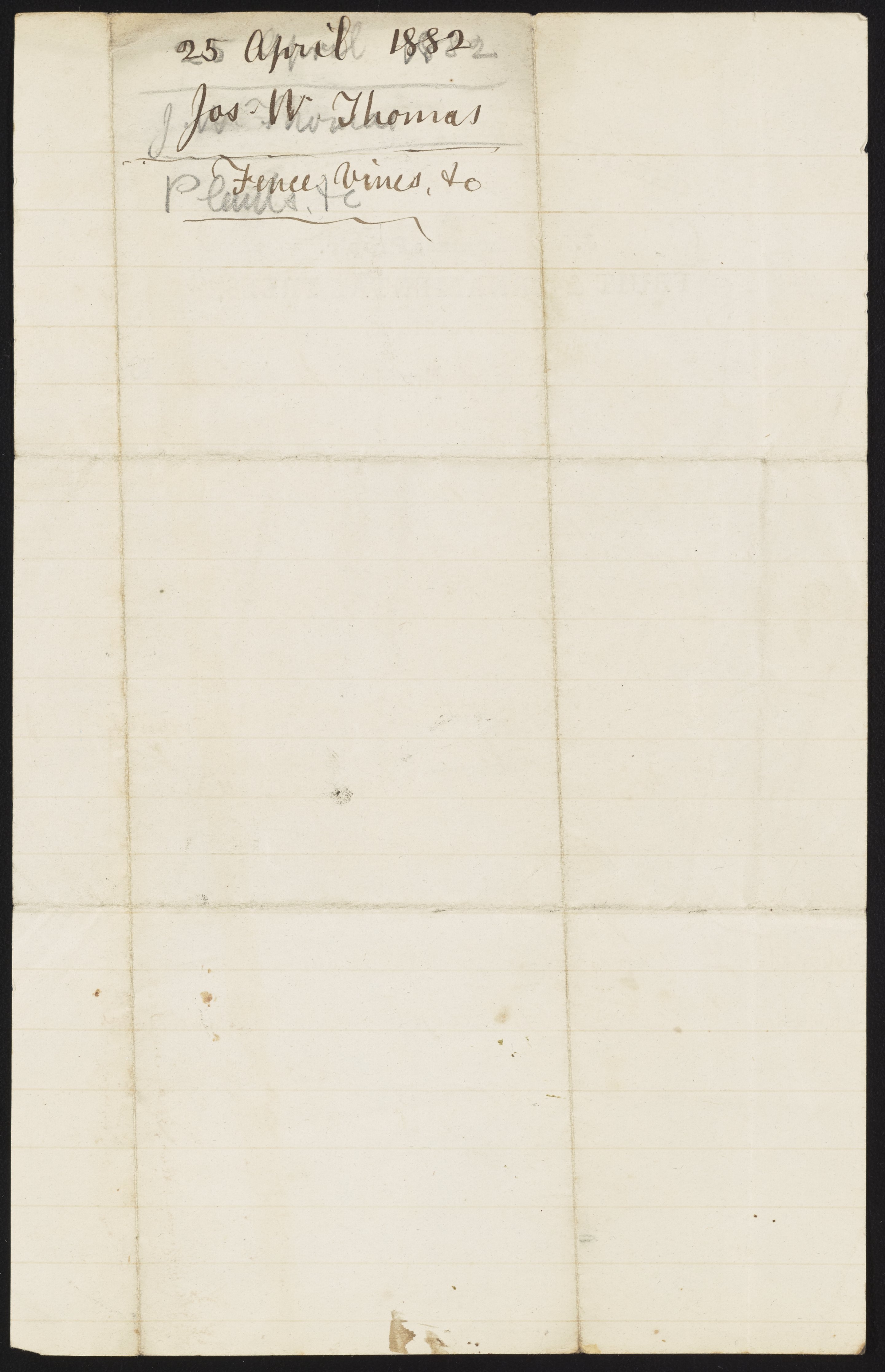 Small JPG1200 x 1857px — 250 KBLarge JPG2880 x 4458px — 1.1 MBFull-sized JPG3755 x 5812px — 1.8 MBOriginal fileTIFF — 3755 x 5812px — 62.5 MBJames Curtis Booth (1810-1888) has noted on the letter verso "Fence, vinces, etc."
