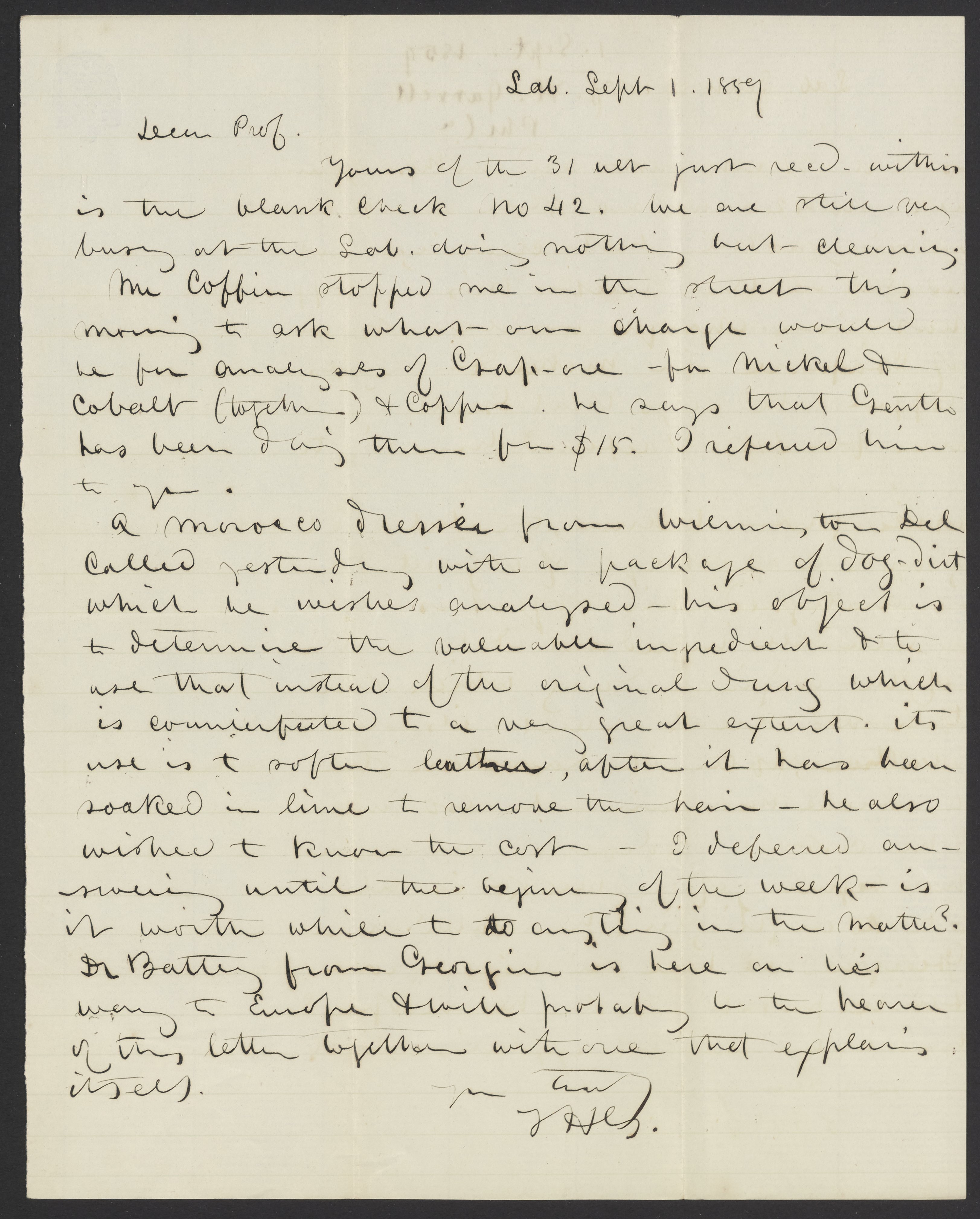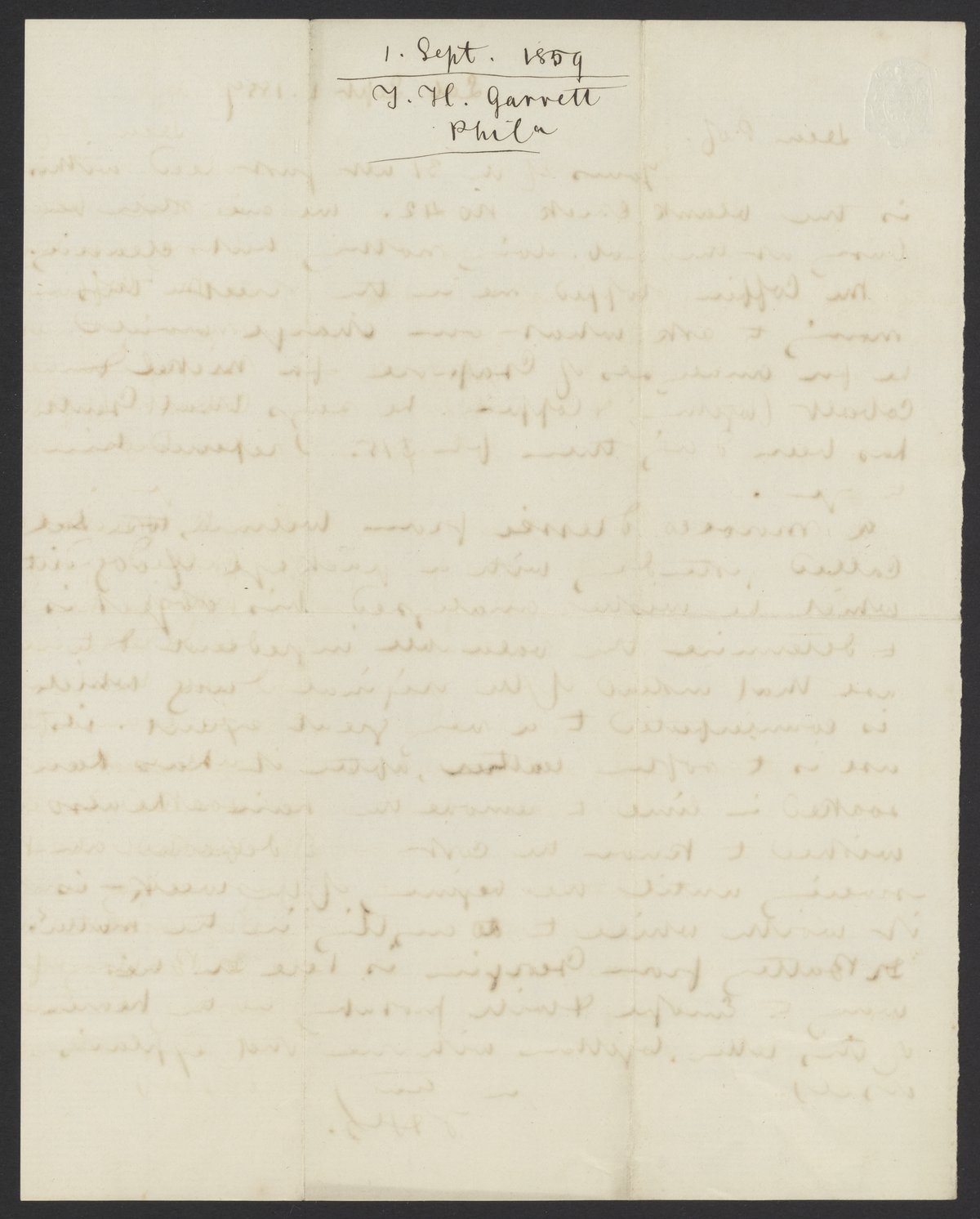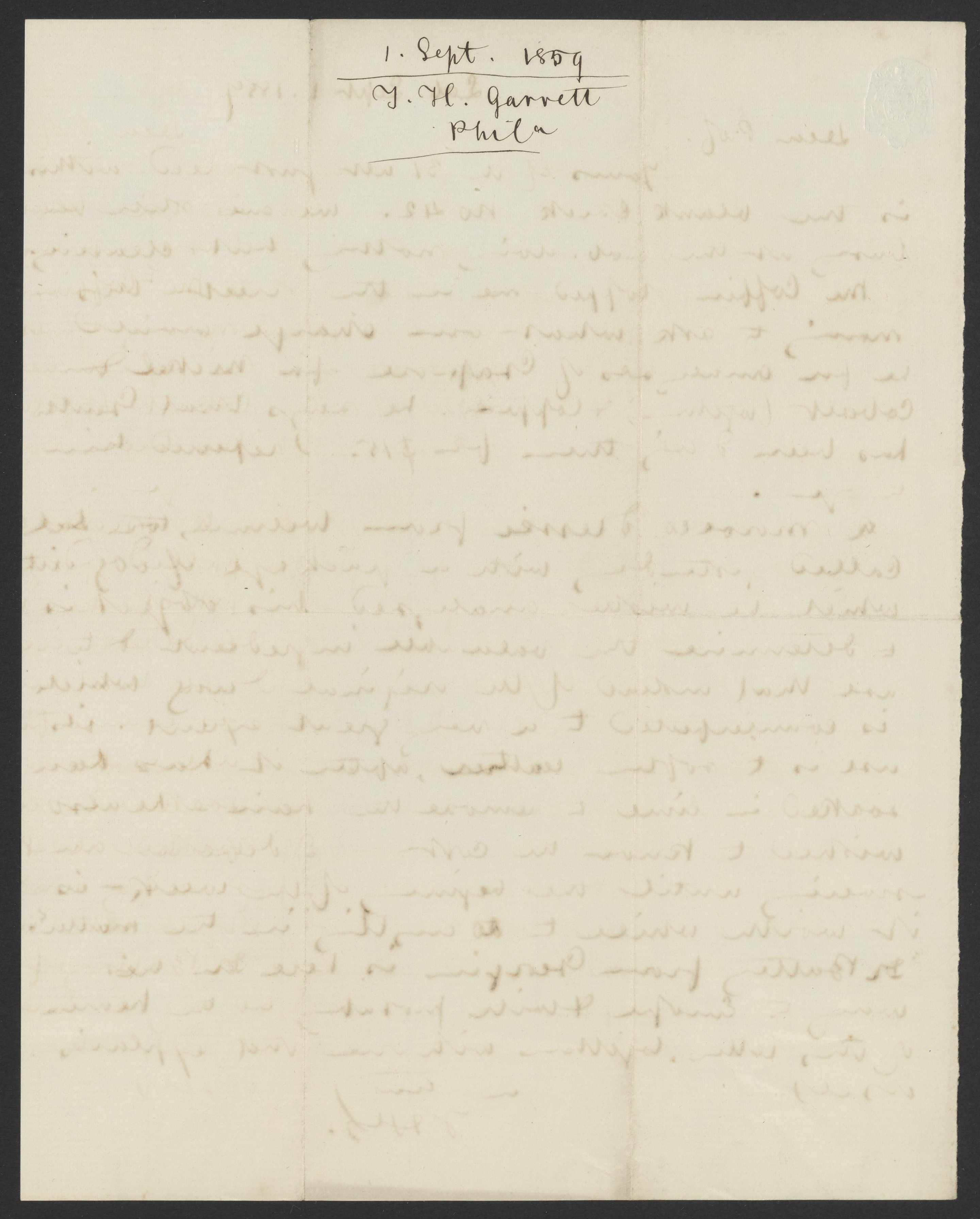 Letter from Thomas H. Garrett to James Curtis Booth, September 1, 1859