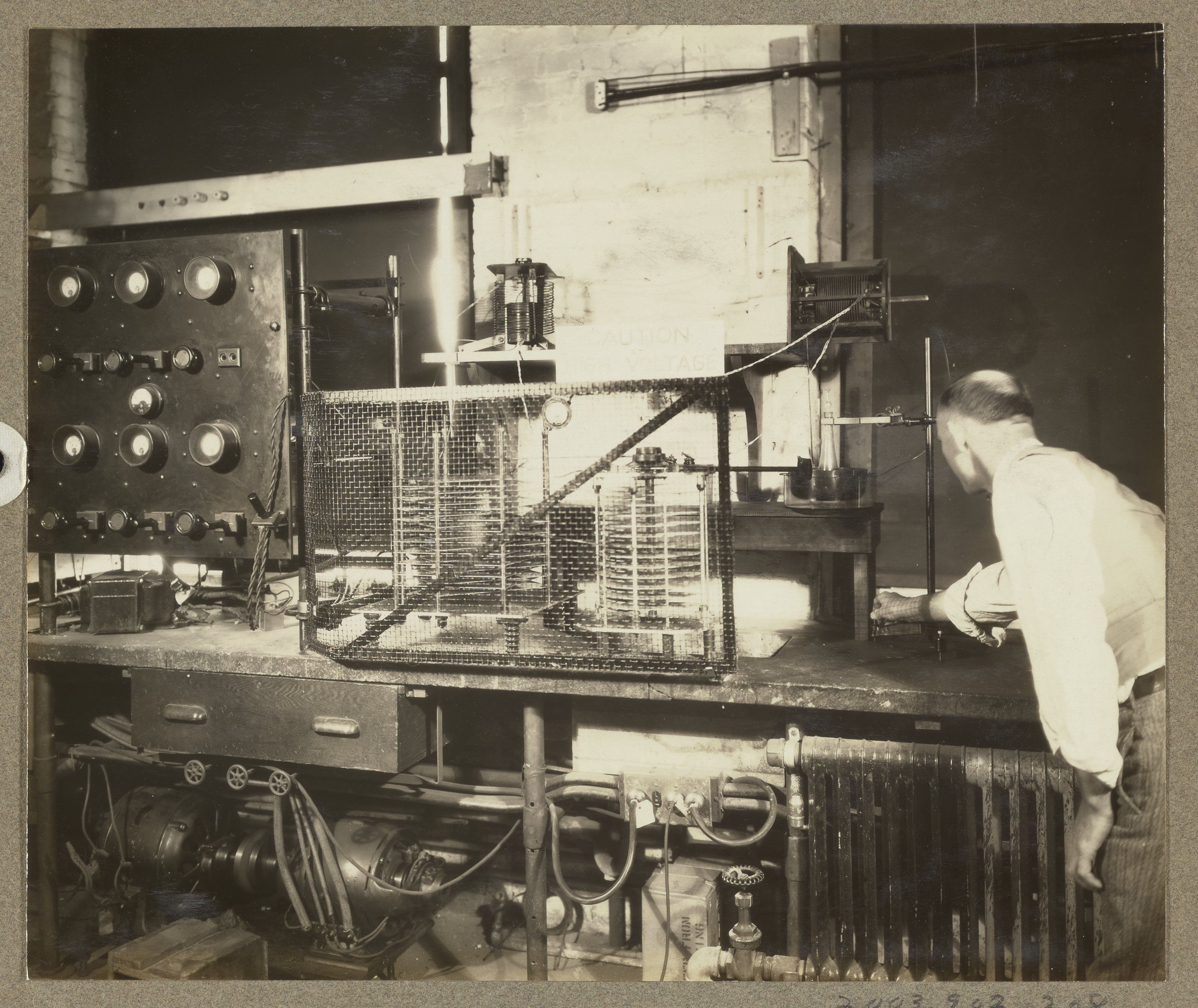 Mr. Olmstead with ultrasonic oscillator at the Fixed Nitrogen Research Laboratory
