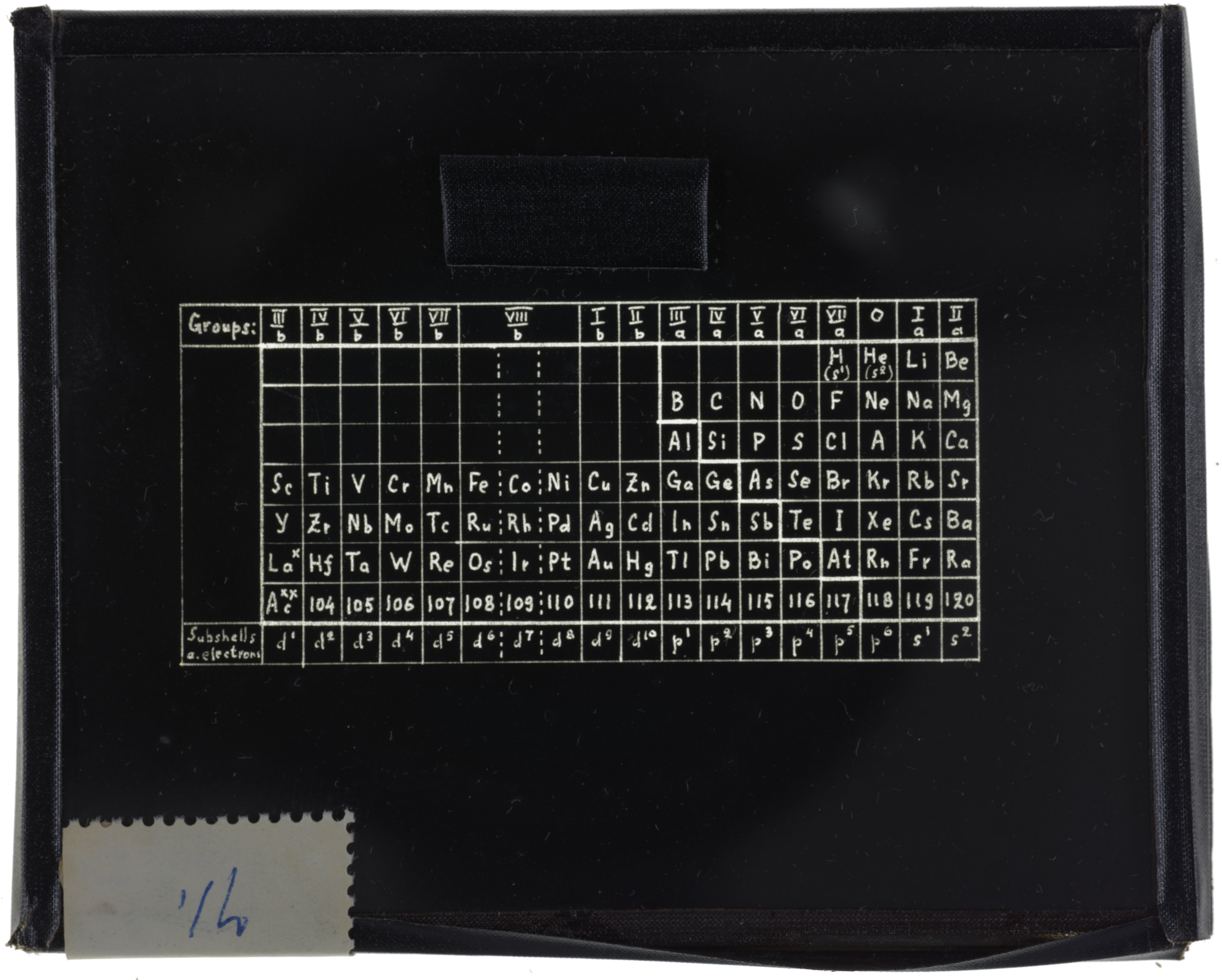 Series table designed by Dmitri Mendeleev (1869)1869 (Original design), Circa 1957 (Date attributed to slide)