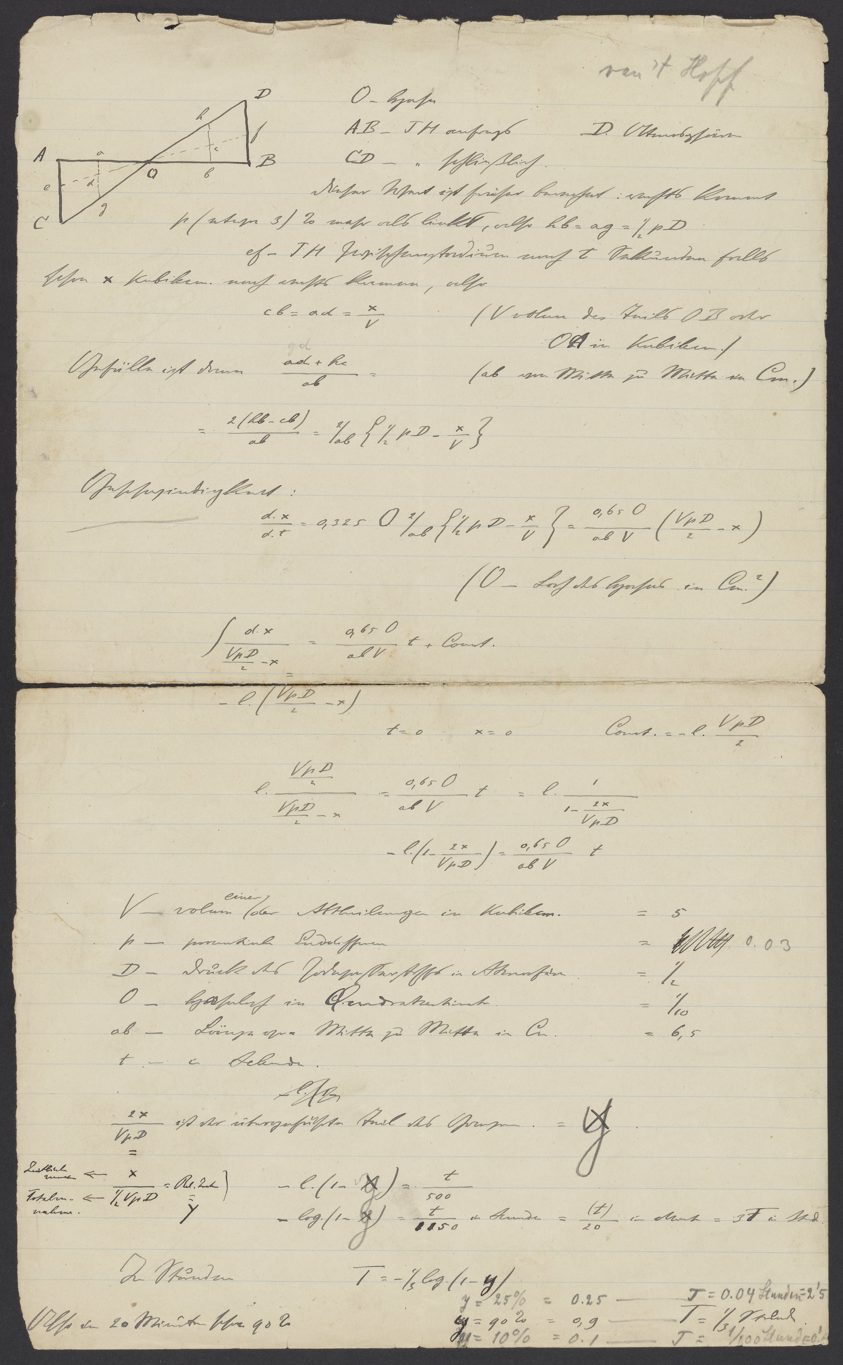 Scientific Notes from Jacobus van't Hoff sent to Georg Bredig
