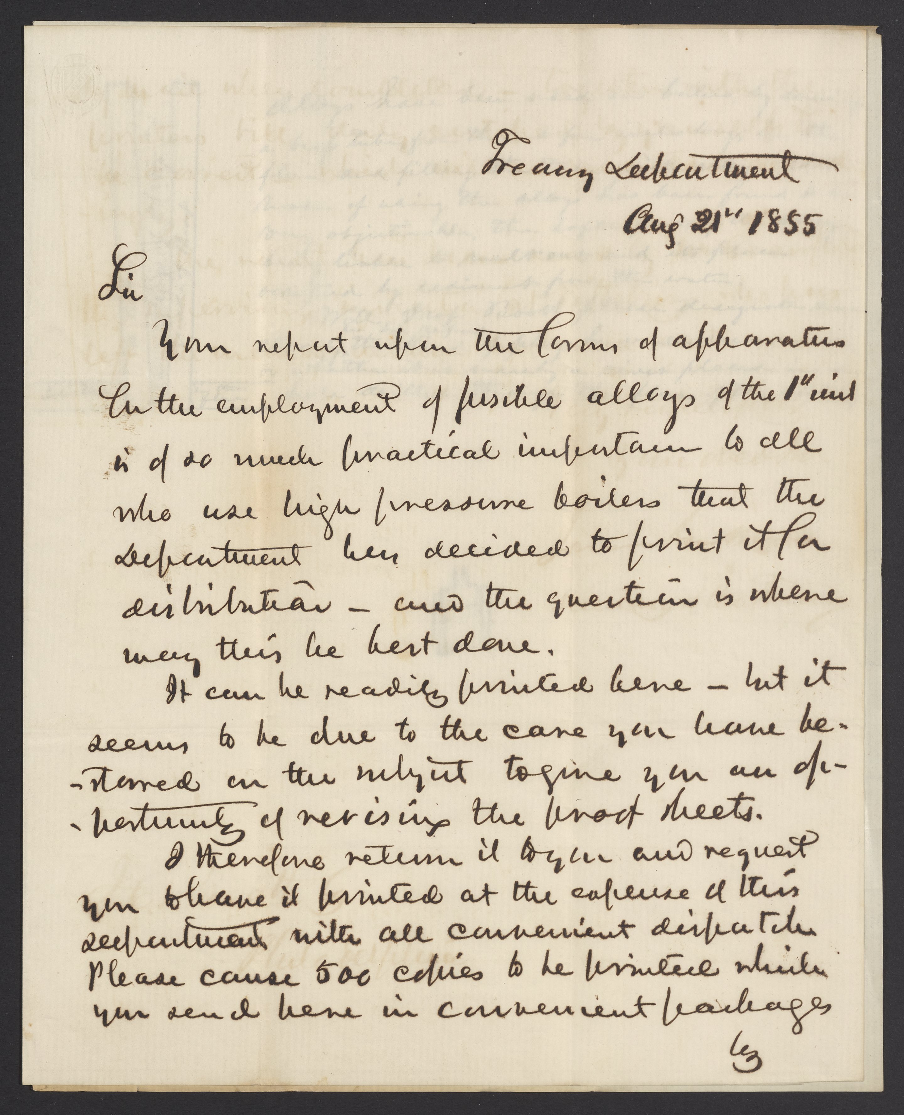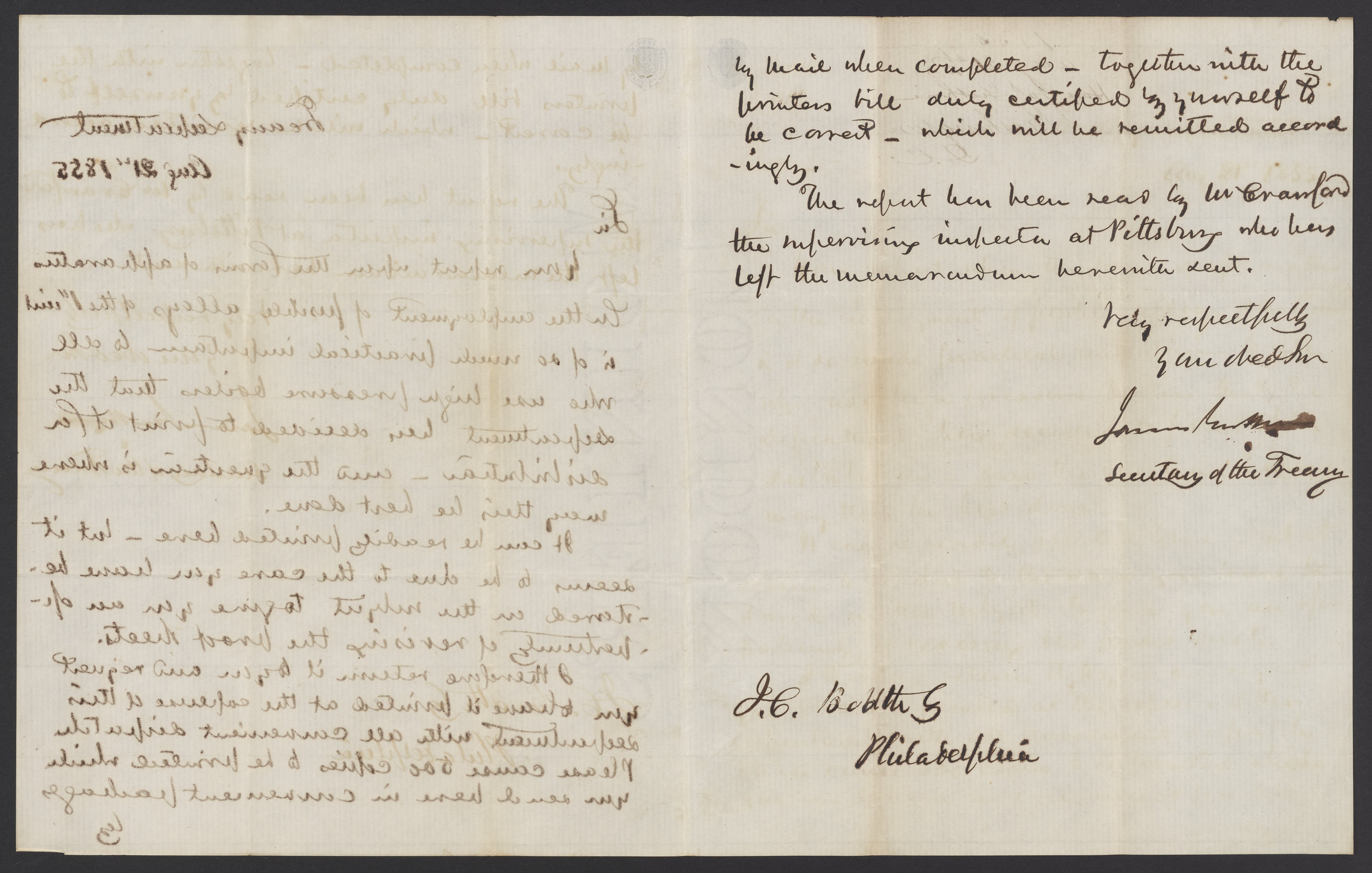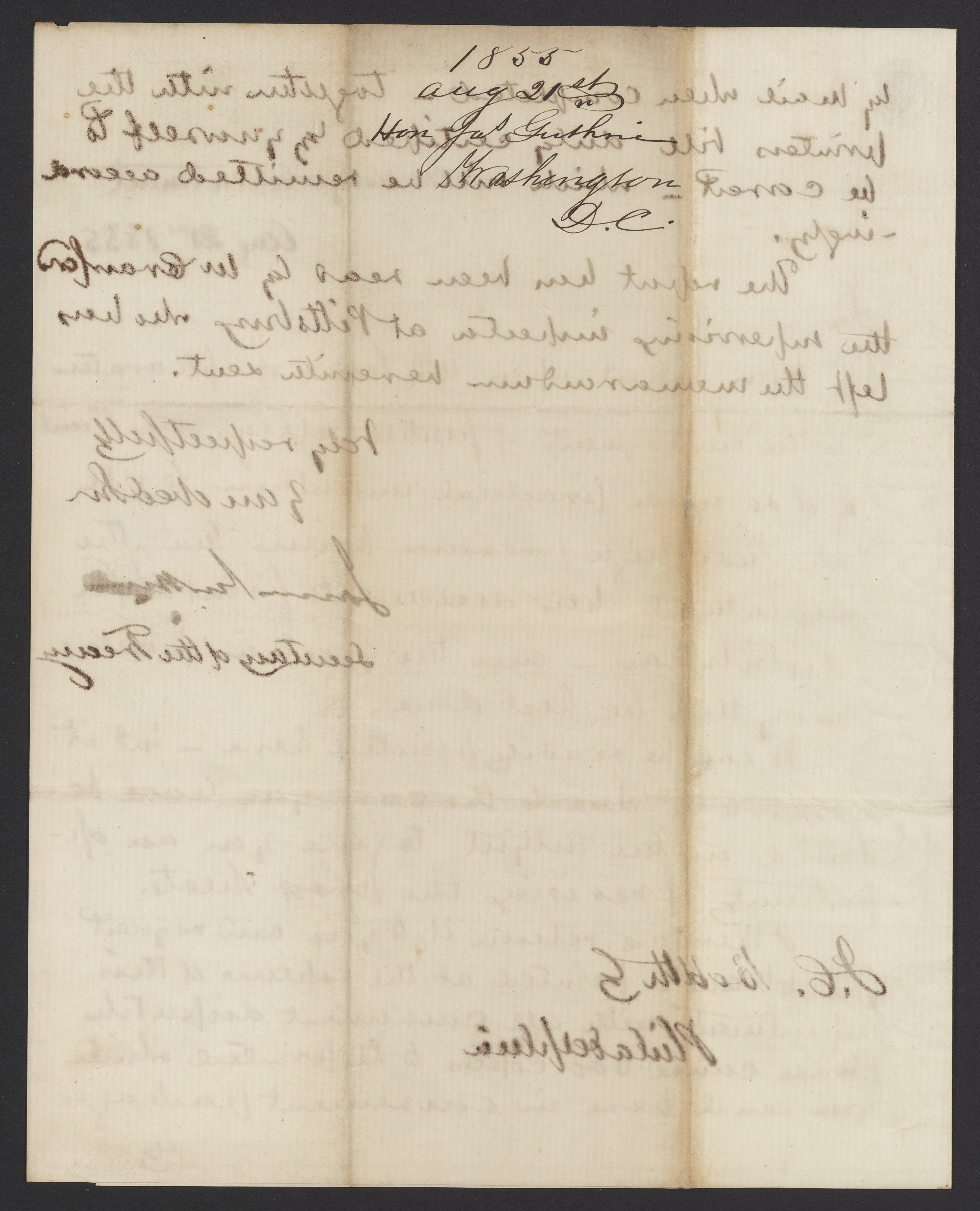 Letter from James B. Guthrie to James Curtis Booth, August 21, 1855