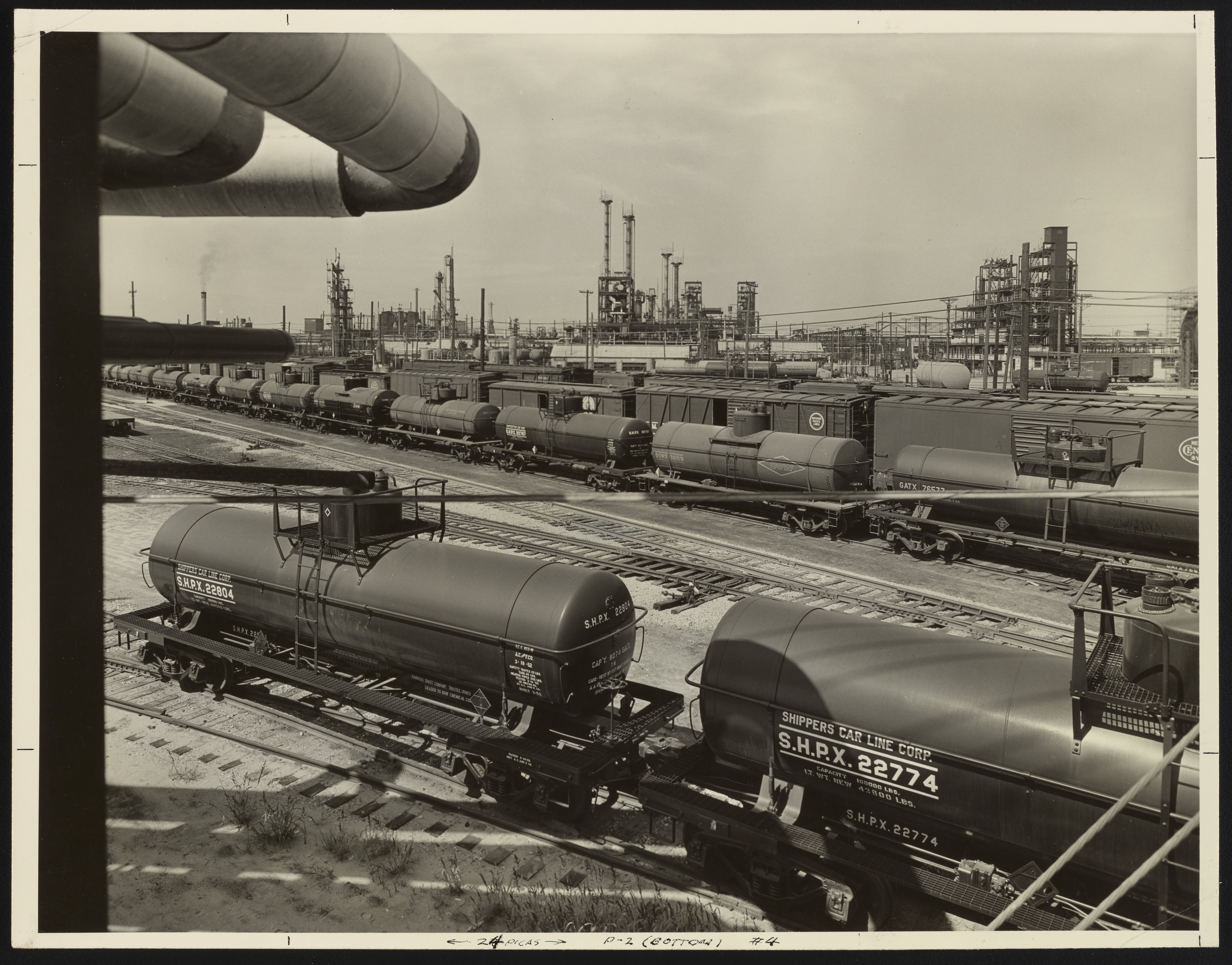 Dow Chemical Company. “Shipping Tanks at Dow Chemical Company,” 1950–1959. Dow Chemical Company Historical Image Collection, Box Oversized Plants 1. Science History Institute. Philadelphia. https://digital.sciencehistory.org/works/n296wz501.