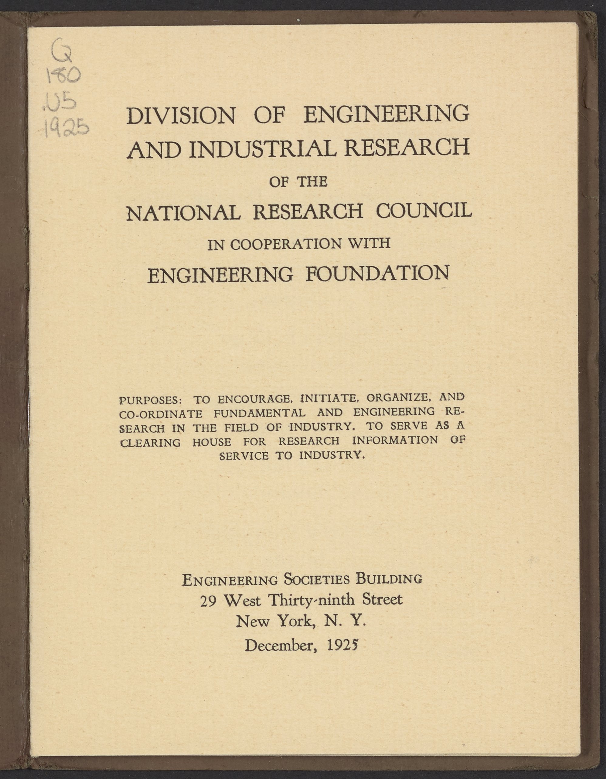Division of Engineering and Industrial Research of the National Research Council in Cooperation with Engineering Foundation