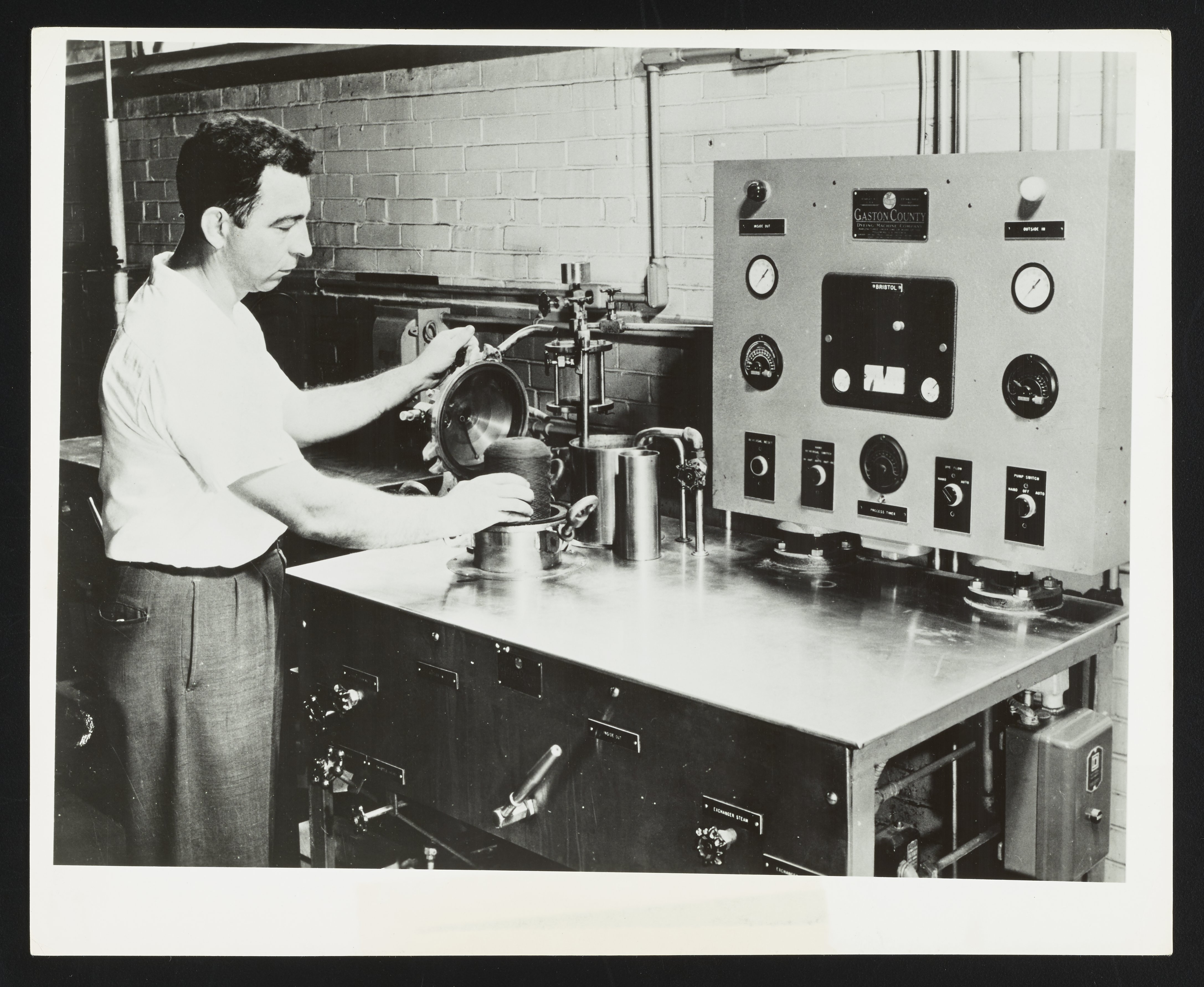 “Pressure-Dyeing Machine in Use at Althouse Customer Service Laboratory,” circa 1960. Photographs from the Records of the Althouse, Bates, and Crompton Chemical Companies, Box 1. Science History Institute. Philadelphia. https://digital.sciencehistory.org/works/n583xt987.