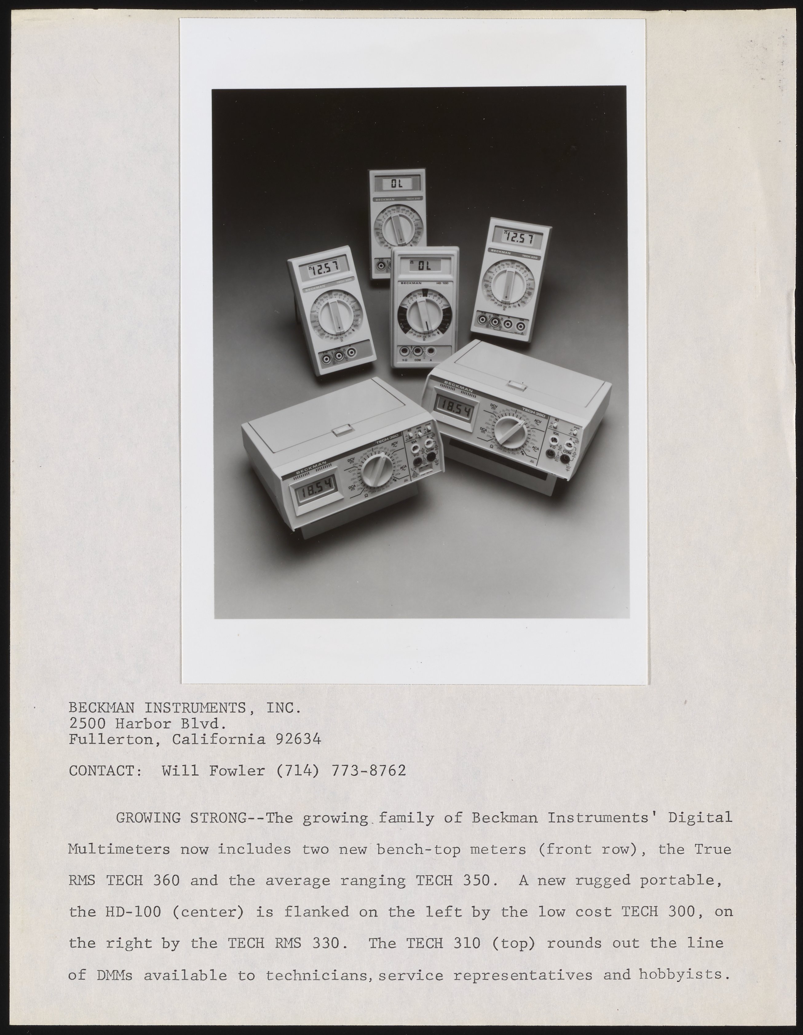 Fowler, Will. “Beckman Digital Multimeters,” circa 1981. Beckman Historical Collection, Box 82. Science History Institute. Philadelphia. https://digital.sciencehistory.org/works/n583xv177.