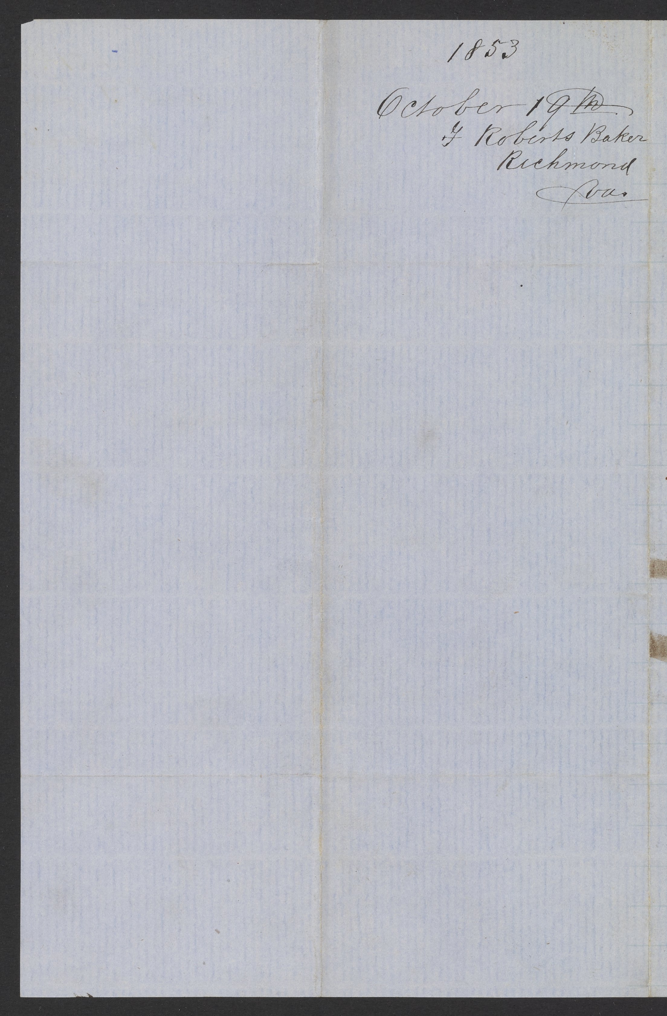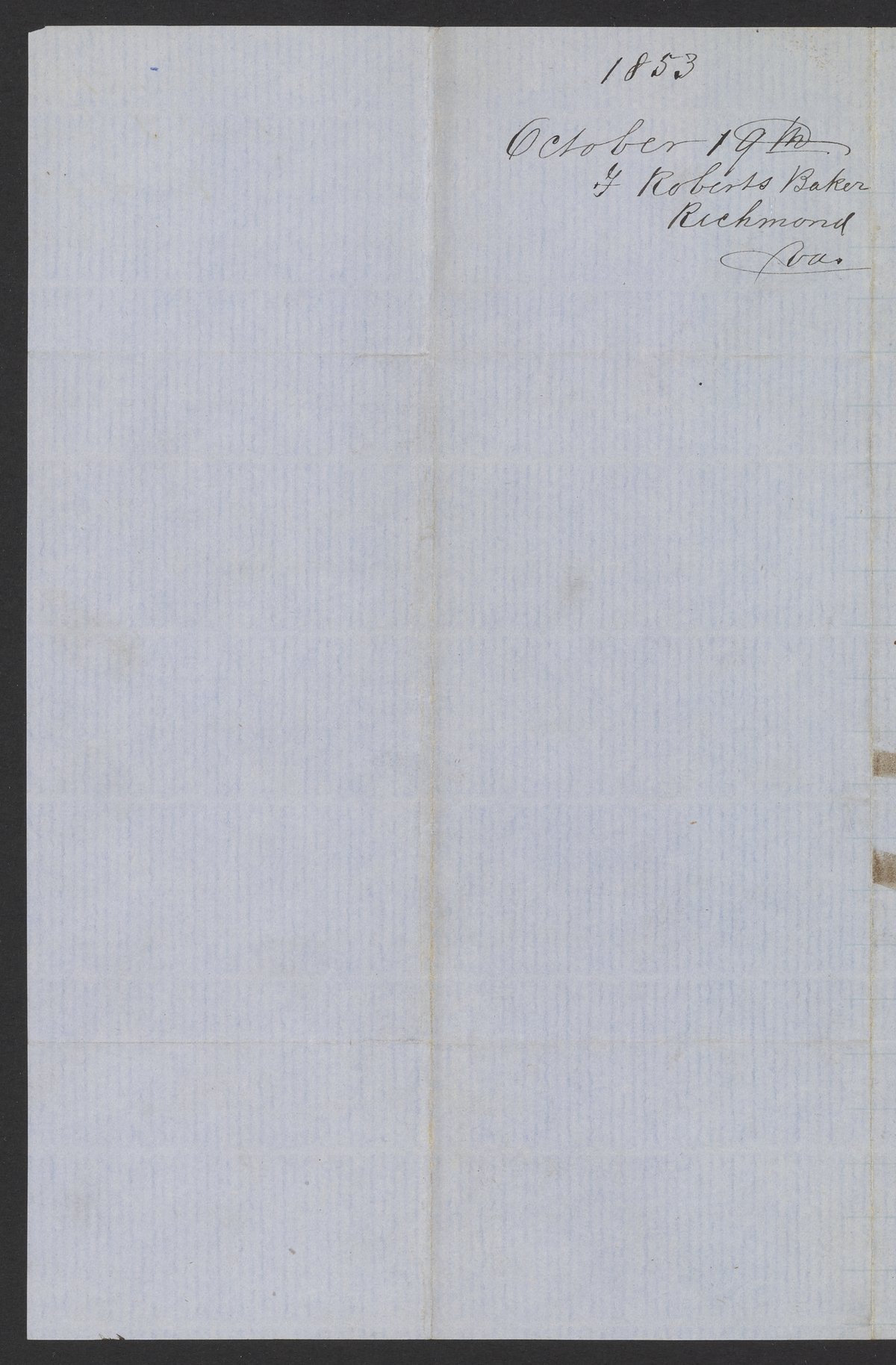Letter from T. Roberts Baker to James C. Booth, October 19, 1853