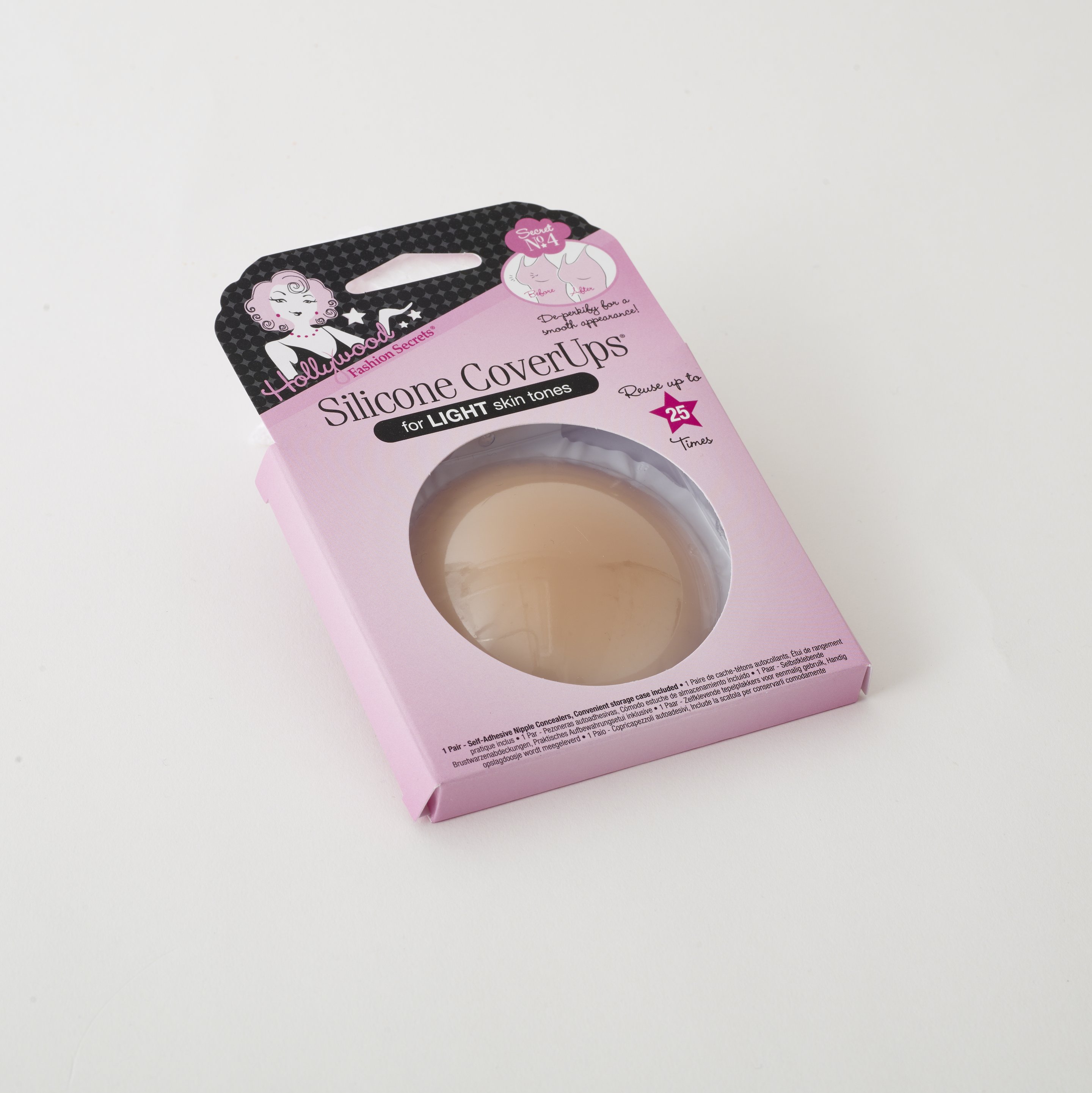 Small JPG1200 x 1202px — 96.3 KBLarge JPG2880 x 2884px — 509 KBFull-sized JPG4689 x 4696px — 1.4 MBOriginal fileTIFF — 4689 x 4696px — 63.1 MBThree varieties of circular cover-up pasties for skin tones "dark," "deep," and "light" produced by the Hollywood Fashion Secrets Company. Each product is encased in pink cardboard packaging with a clear plastic window. Two pasties are size 1 and the other is size 2.