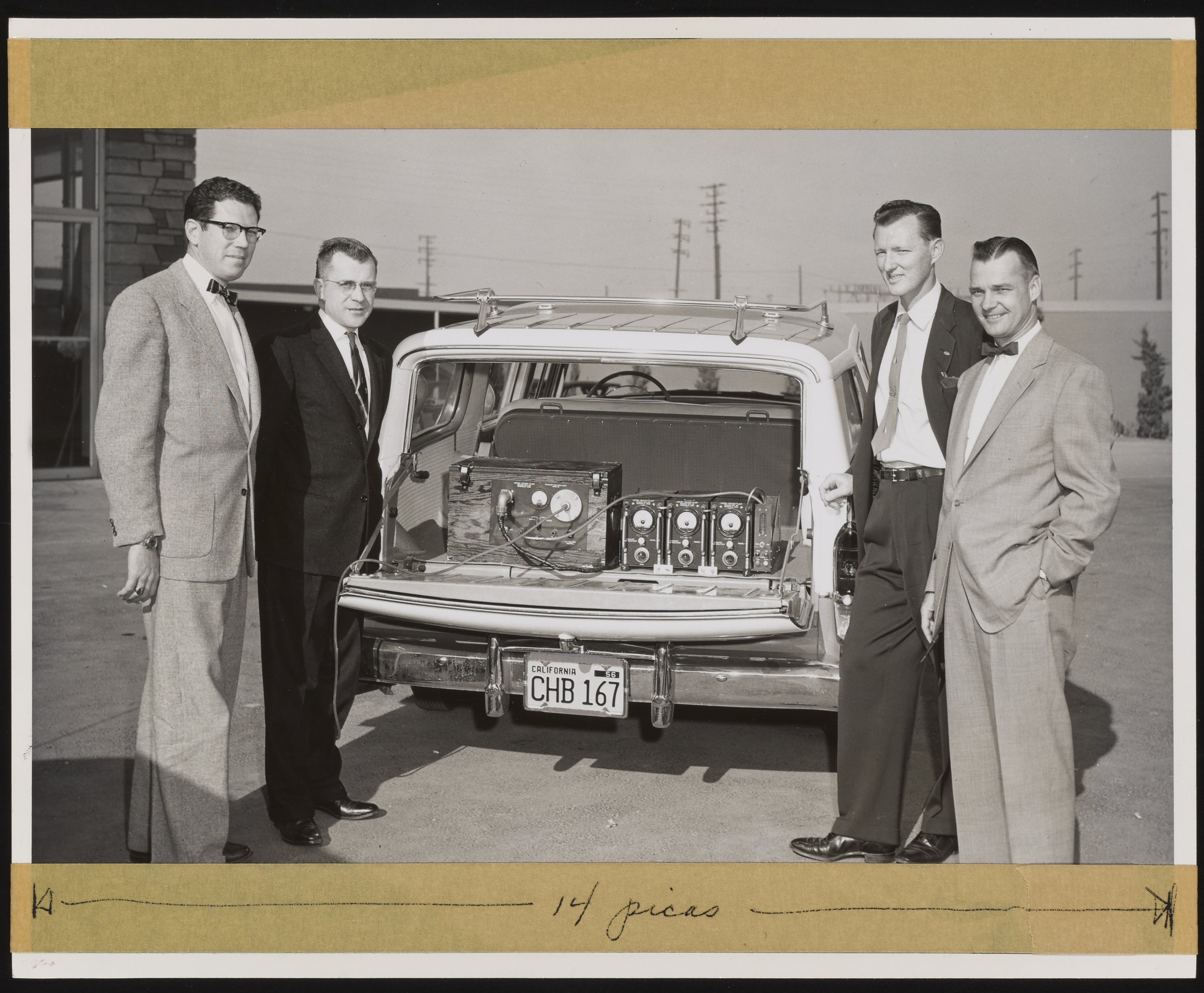 Dietrich, T. A. “Max Liston, Gary Kemp, Pat Conners, and Jean Schirmer with Atmosphere Analyzer,” 1956. Beckman Historical Collection, Box 55, Folder 169. Science History Institute. Philadelphia. https://digital.sciencehistory.org/works/n870zq83v.