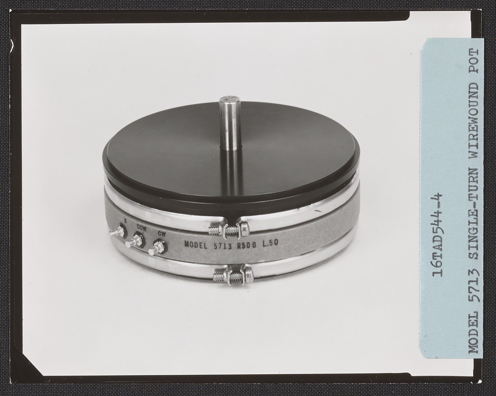 Dietrich, T. A. “Helipot Model 5713 Single-Turn Wirewound Potentiometer,” 1950–1969. Beckman Historical Collection, Box 86. Science History Institute. Philadelphia. https://digital.sciencehistory.org/works/n870zr166.