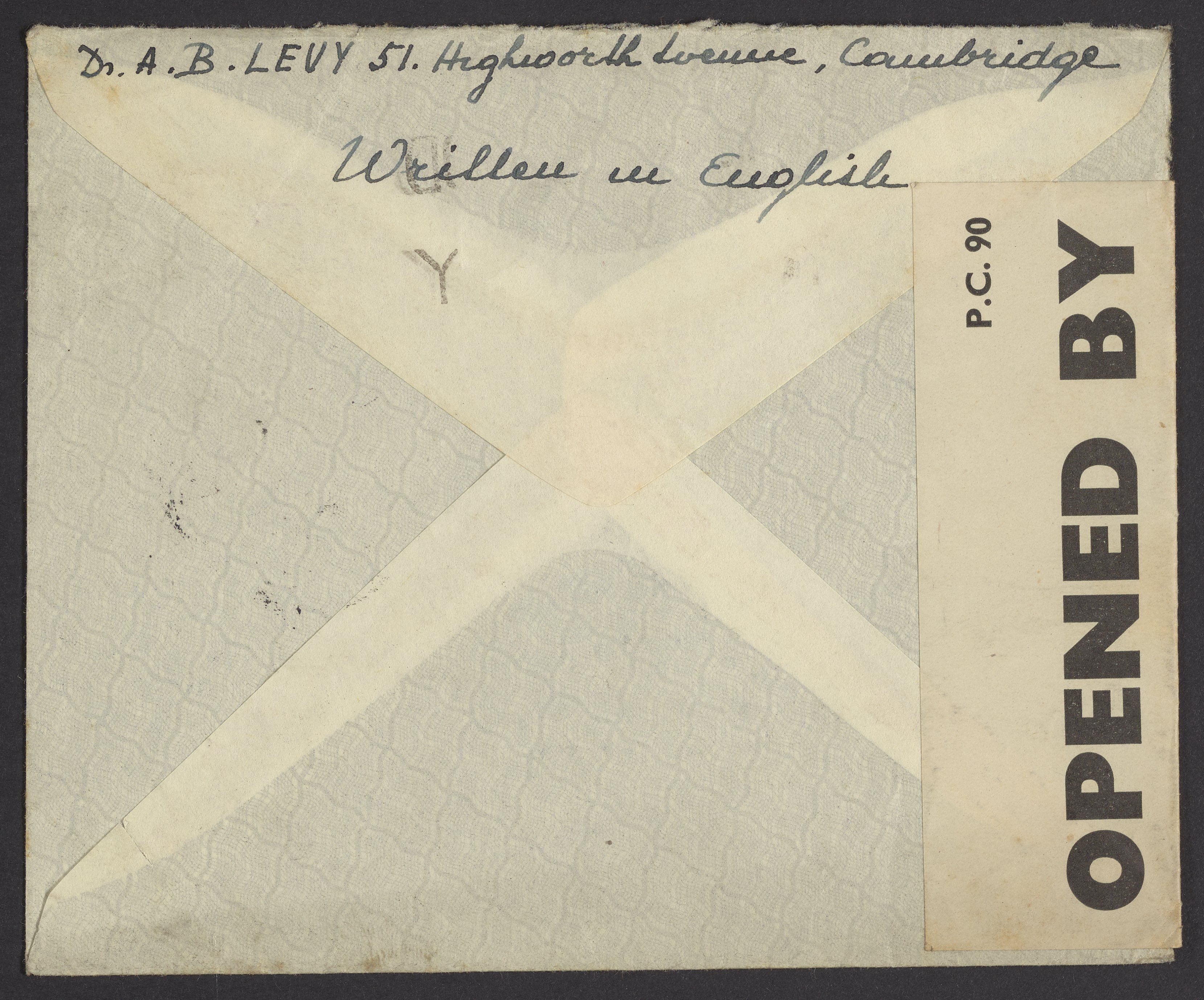 Letter to Gabor B. Levy (1913-1999) from his mother Margaret Levy (1886-1975). Written on stationery belonging "A. B. Levy," likely Gabor's father, Albert B. "Bela" Levy (1873-1951).