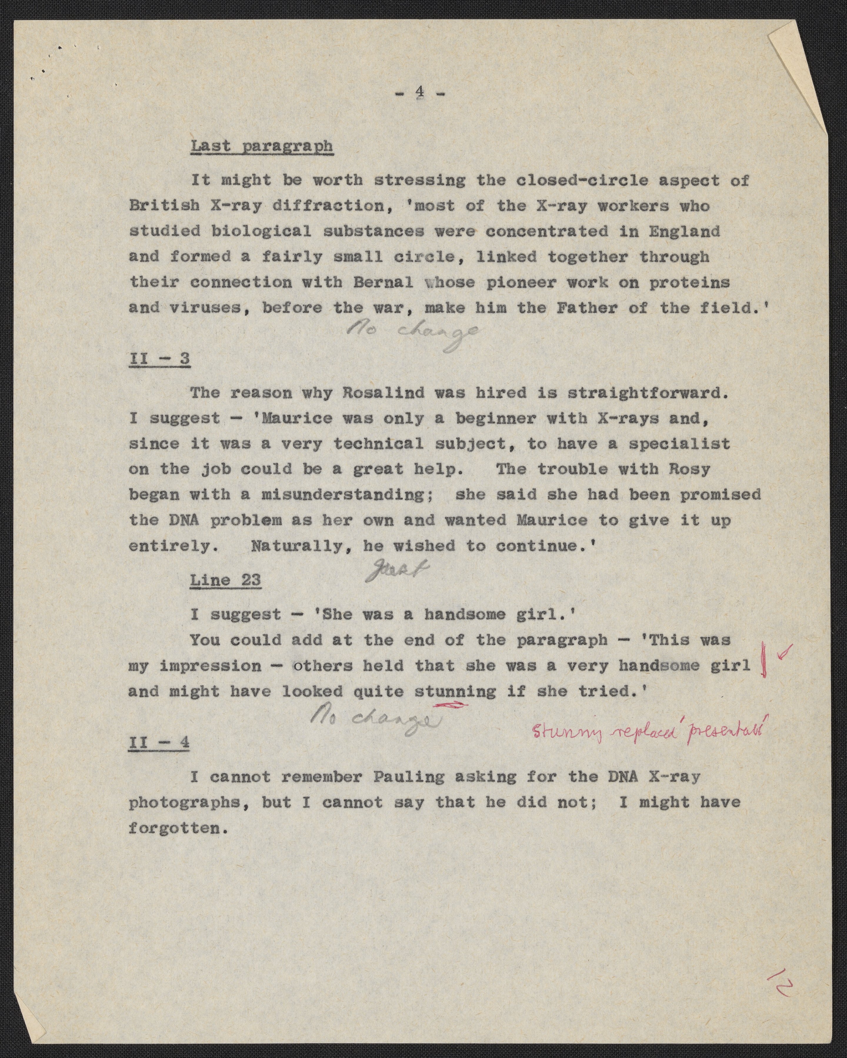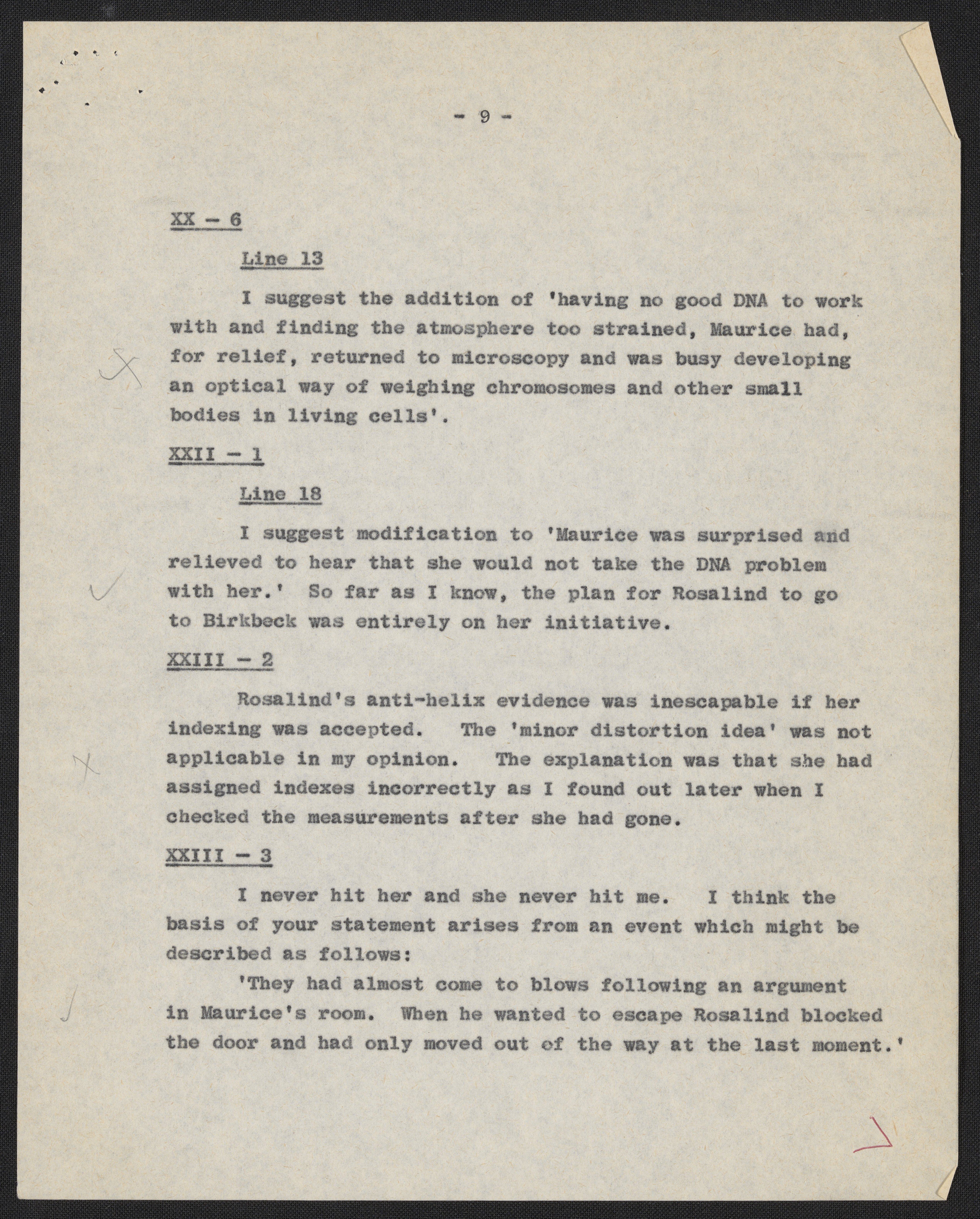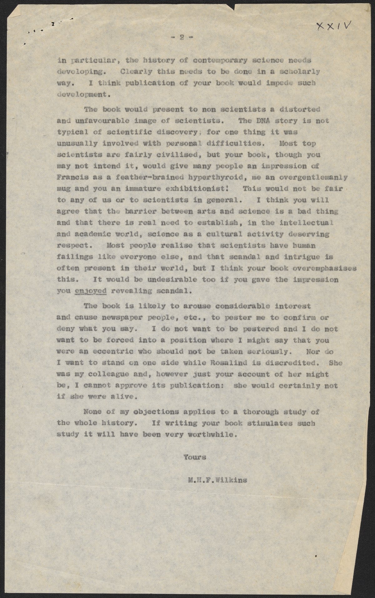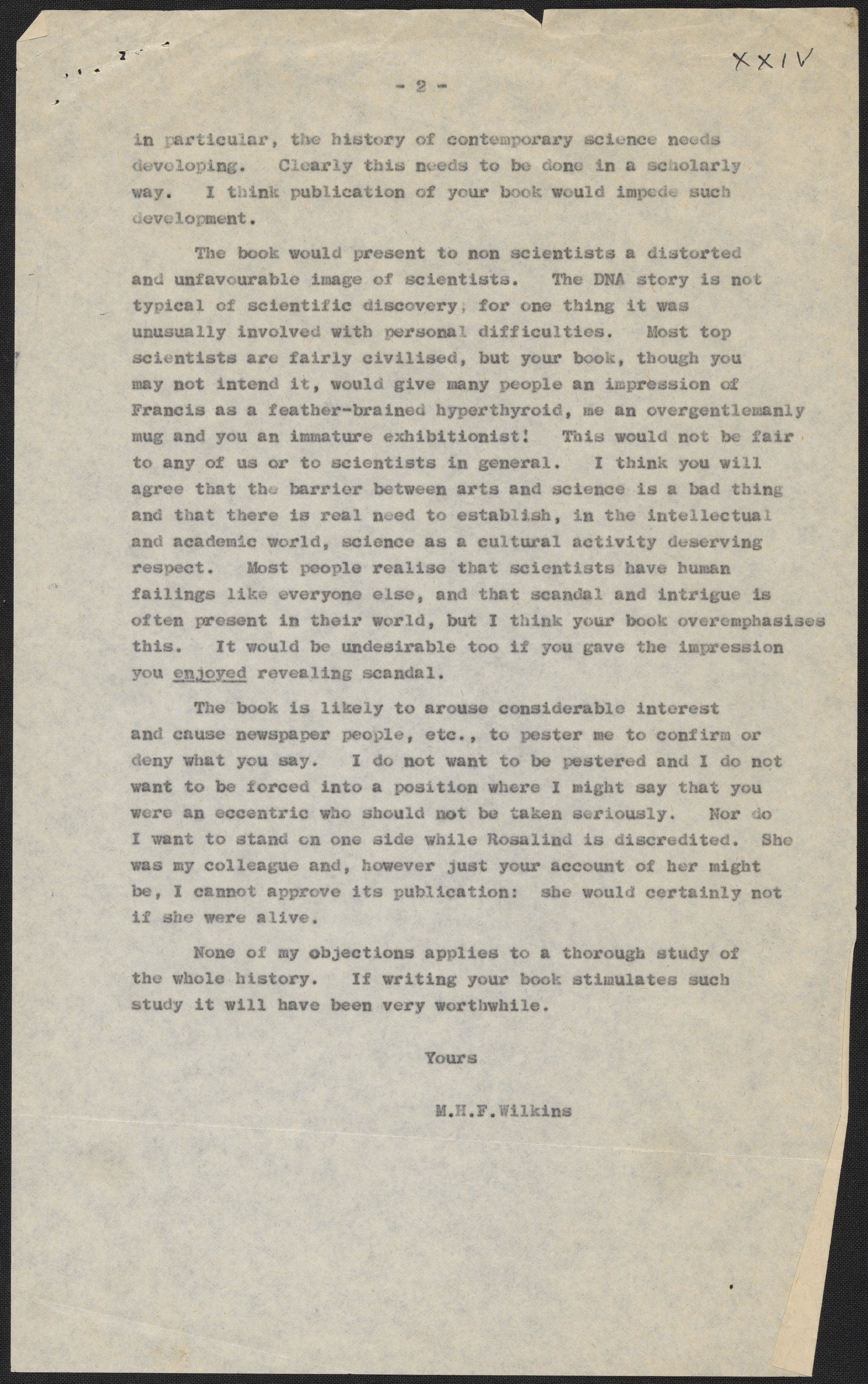 Letters and notes on "Honest Jim" from Maurice Wilkins to James D. Watson, July 1966